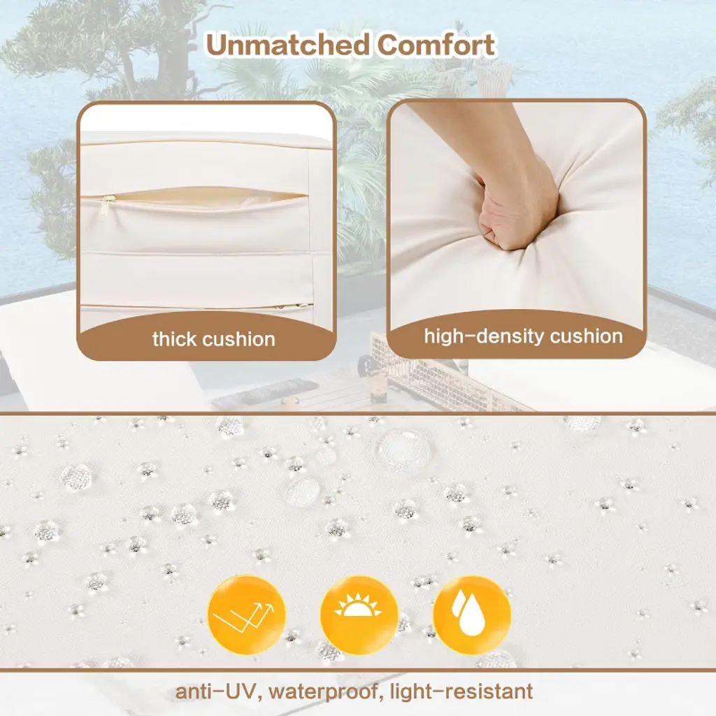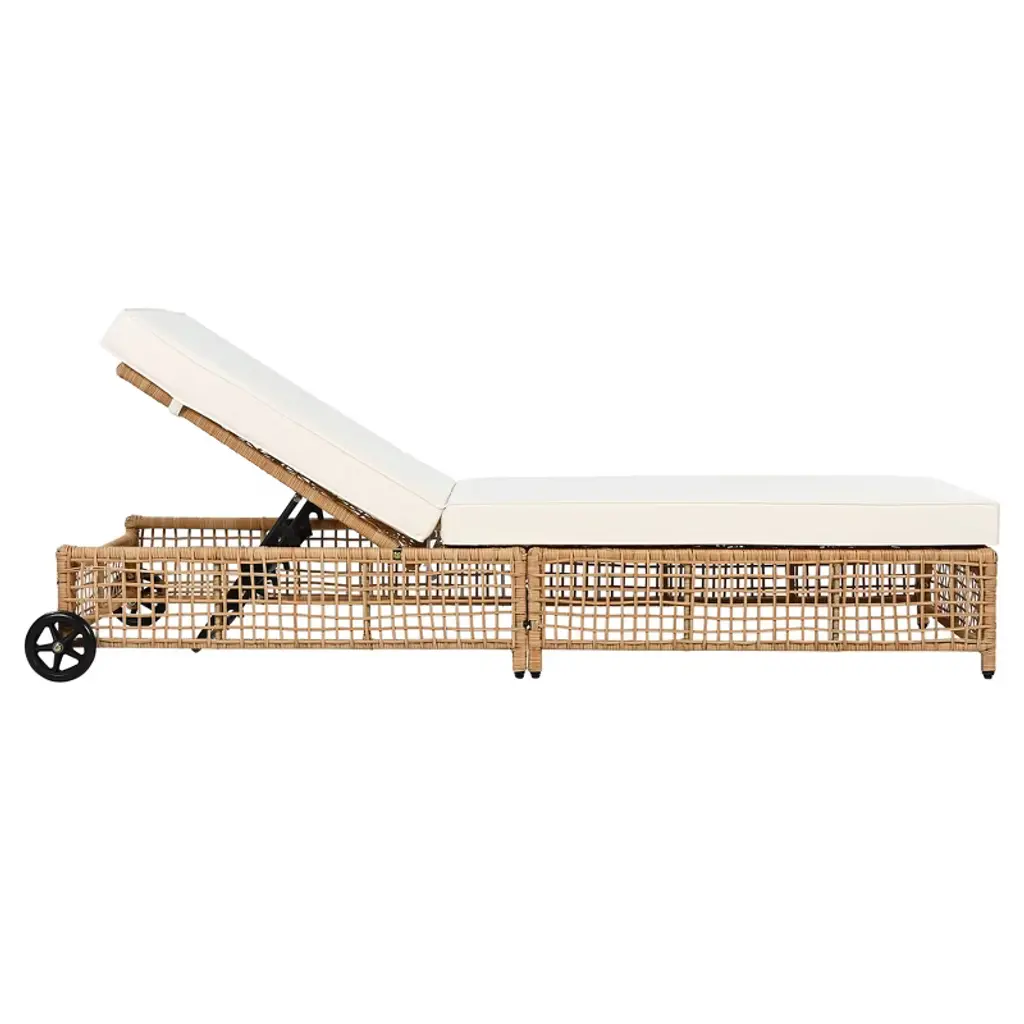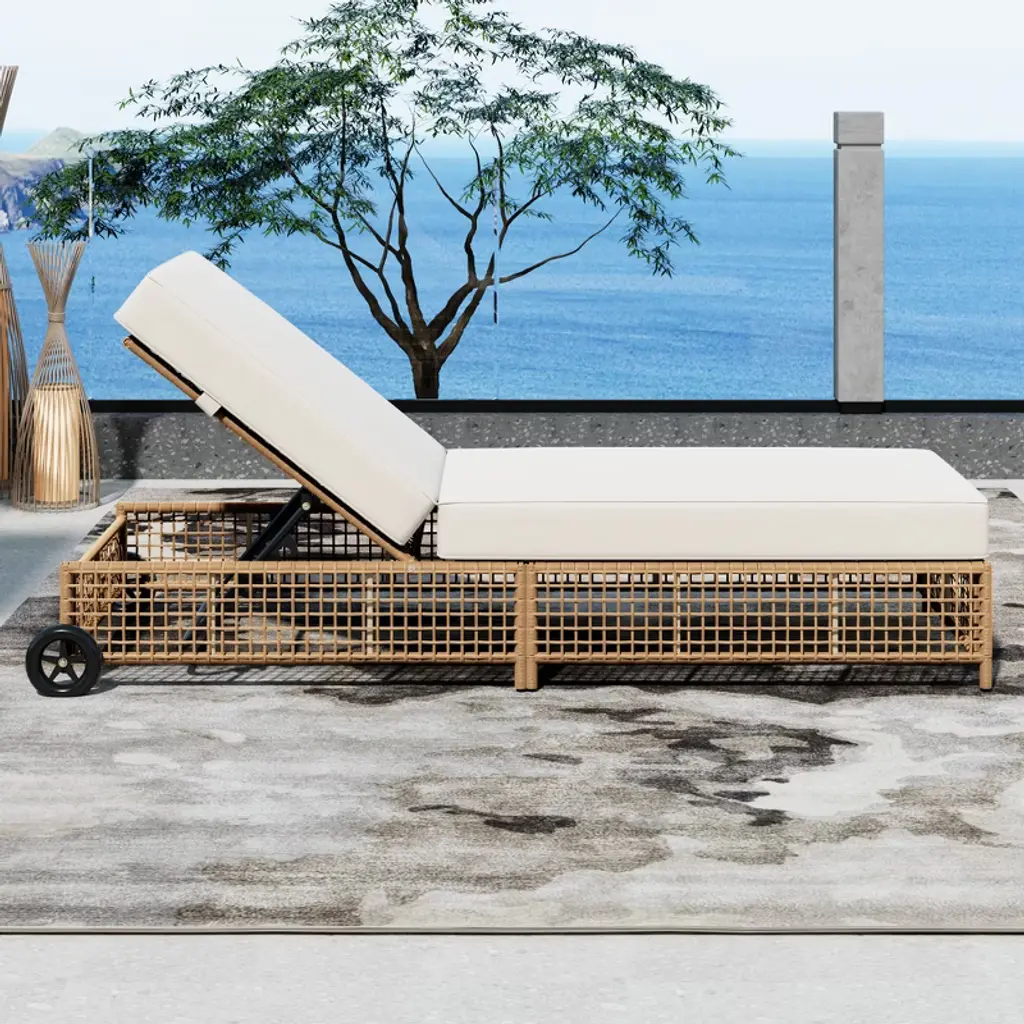 Yoocozz 2-piece Rattan Lounge Set - Adjustable Chaise Lounges With Cushions - Natural+beige
