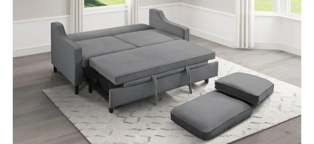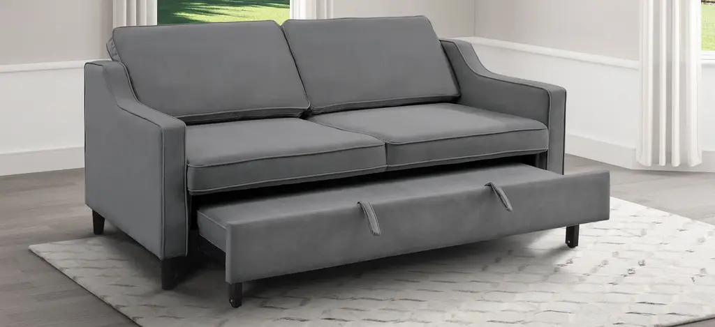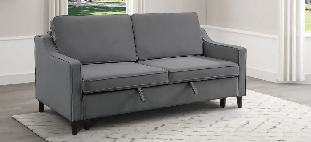 With versatility of function, the Dickinson convertible sofa presents a unique seating option for your household. The pull-out bed and click-mechanism seat back of this sofa engage to create a platform for sleeping or relaxing. The back cushions are removable as well as reversible. Offered in a plush cover for neutral decorative placement and soft touch, the classic profile furthers the placement ability within a number of home environments.