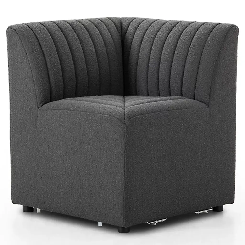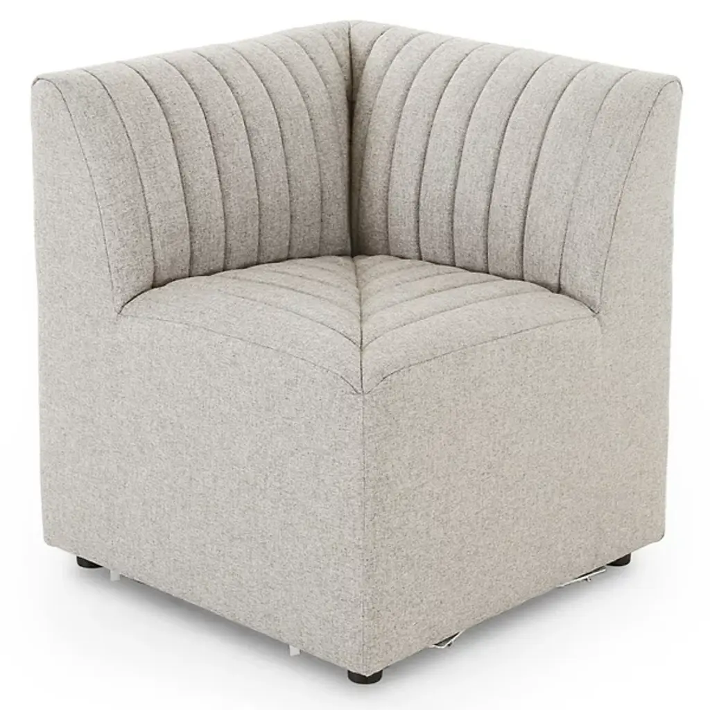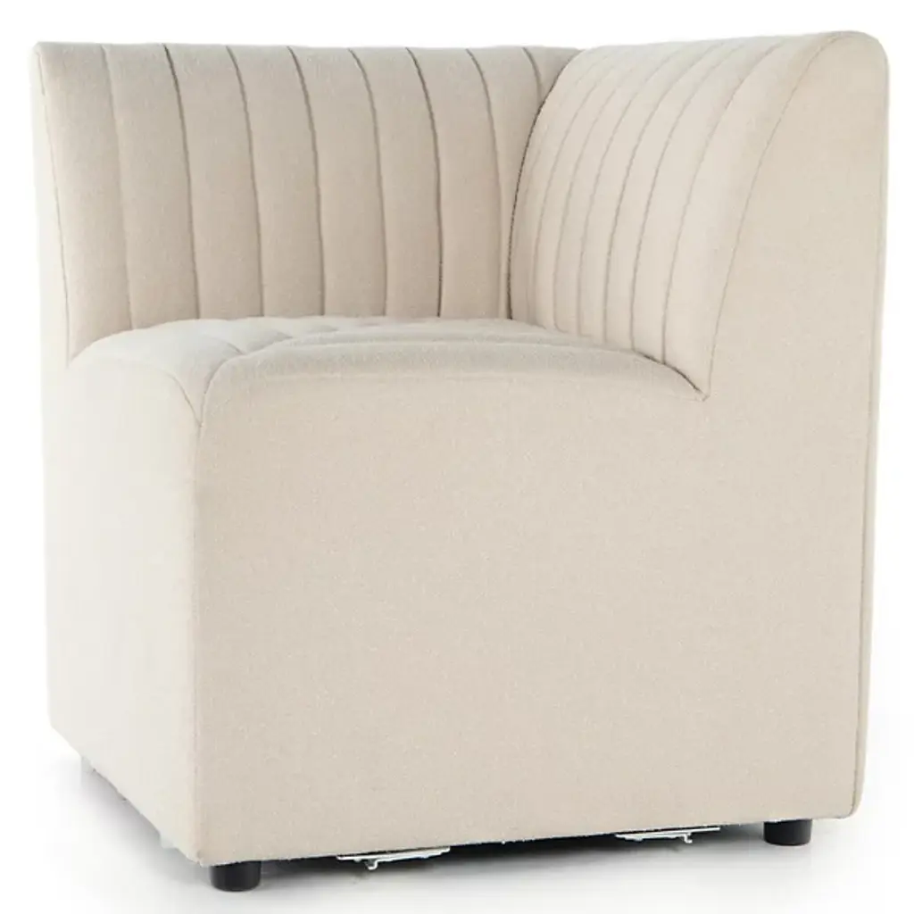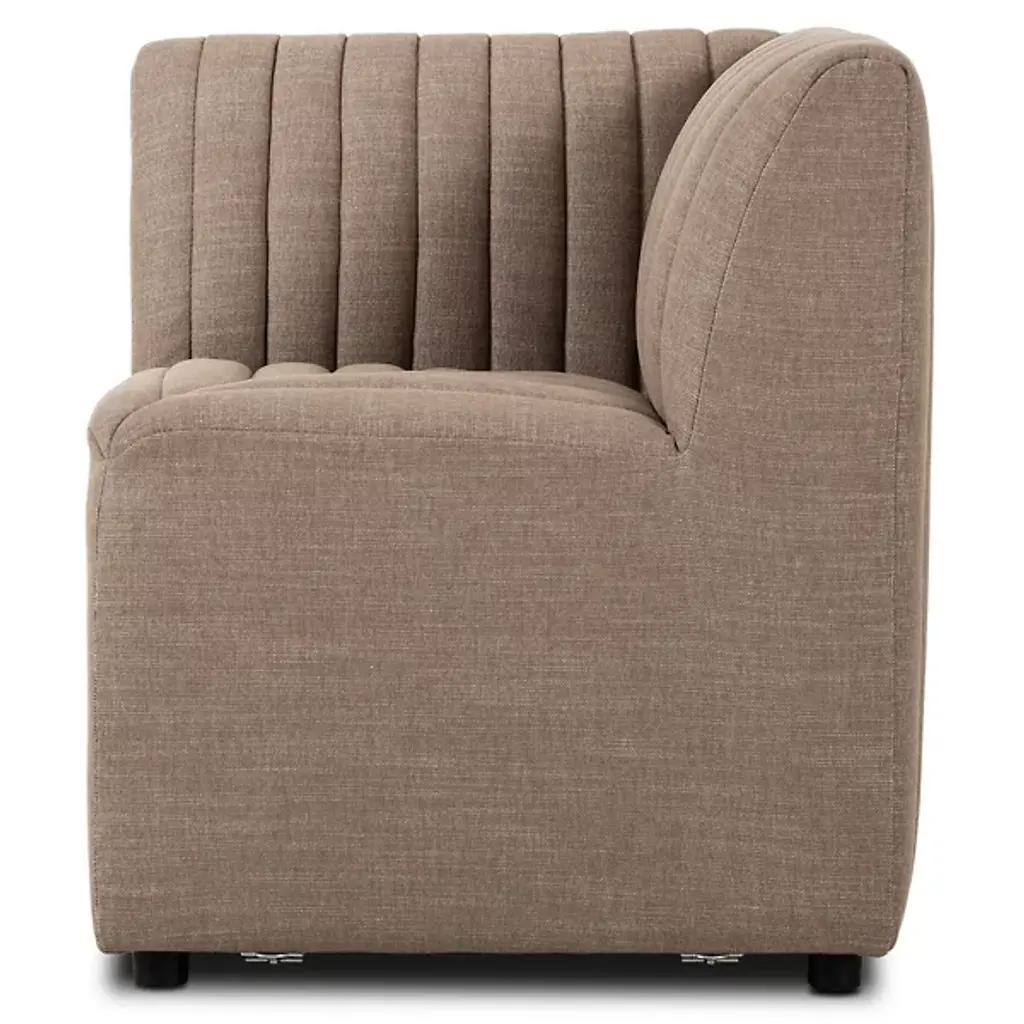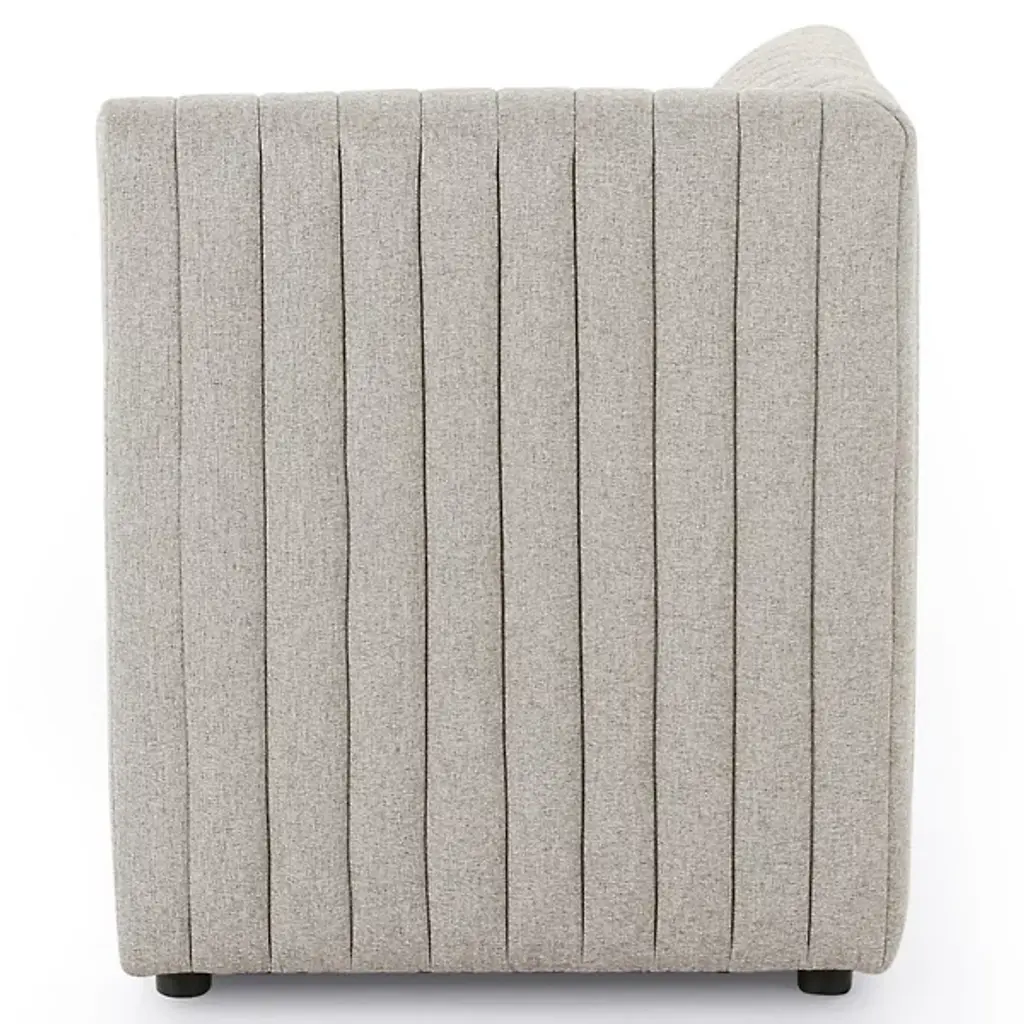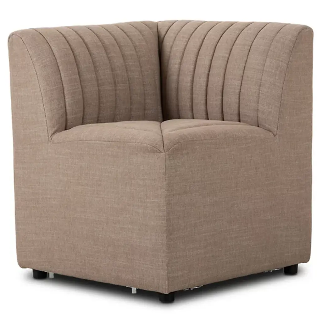 The Augustine Dining Banquette Corner Chair from Four Hands offers flexibility and style with clean lines and inviting design. Each seat sports soft upholstery, and its dramatic vertical channeling adds texture while enhancing comfort. Perfect as a standalone corner chair or combined in pairs for a cozy banquette or spacious lounge seat, this versatile design brings a refined touch to dining or living spaces with its modern, tailored look.