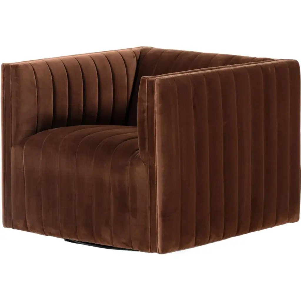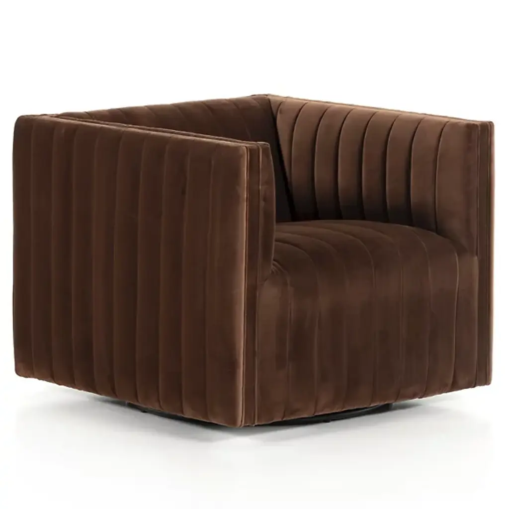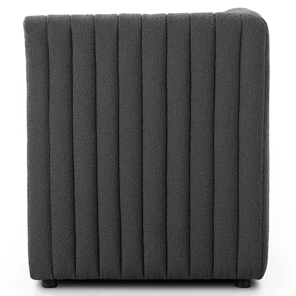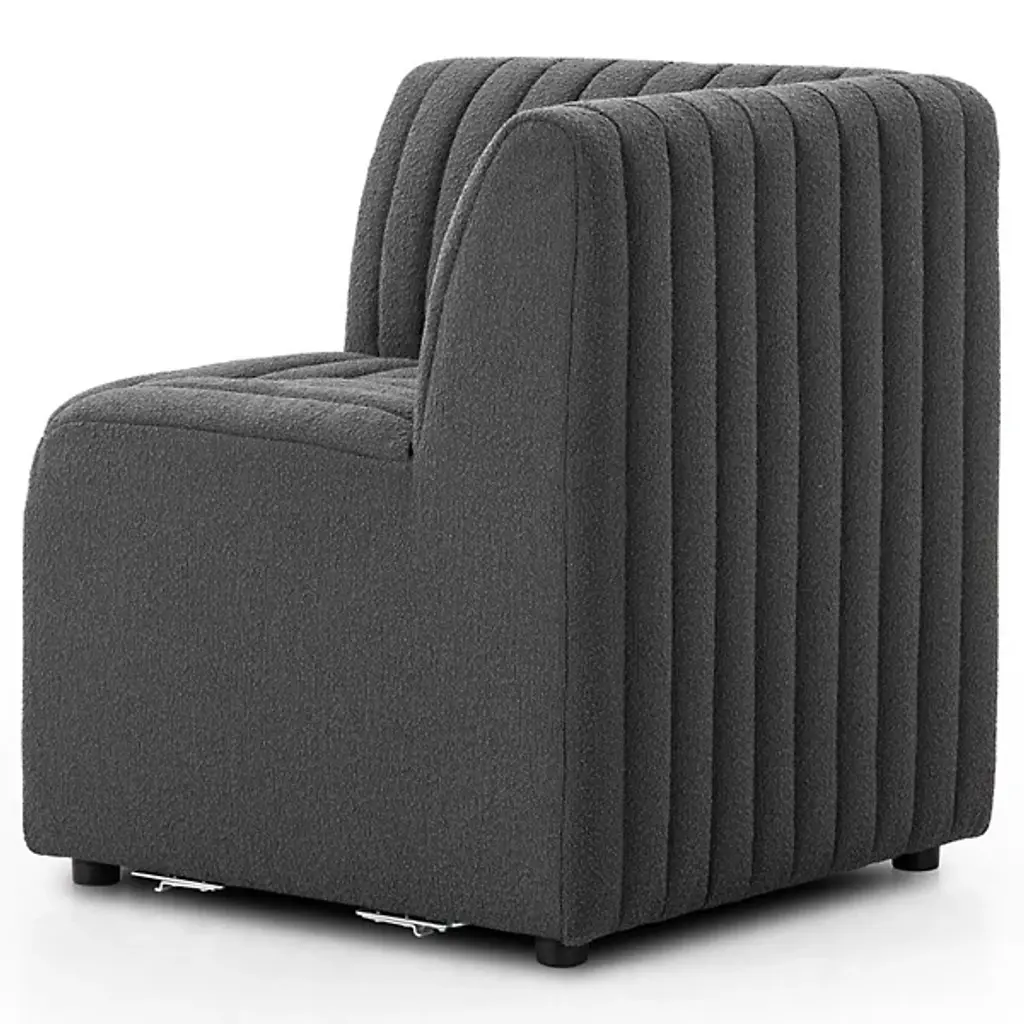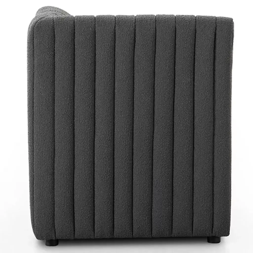The Augustine Dining Banquette Corner Chair from Four Hands offers flexibility and style with clean lines and inviting design. Each seat sports soft upholstery, and its dramatic vertical channeling adds texture while enhancing comfort. Perfect as a standalone corner chair or combined in pairs for a cozy banquette or spacious lounge seat, this versatile design brings a refined touch to dining or living spaces with its modern, tailored look.