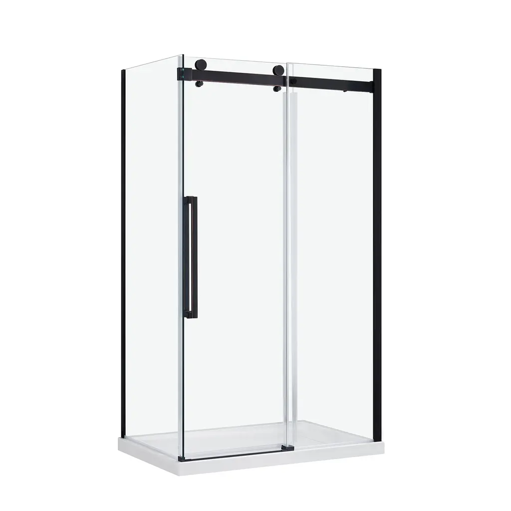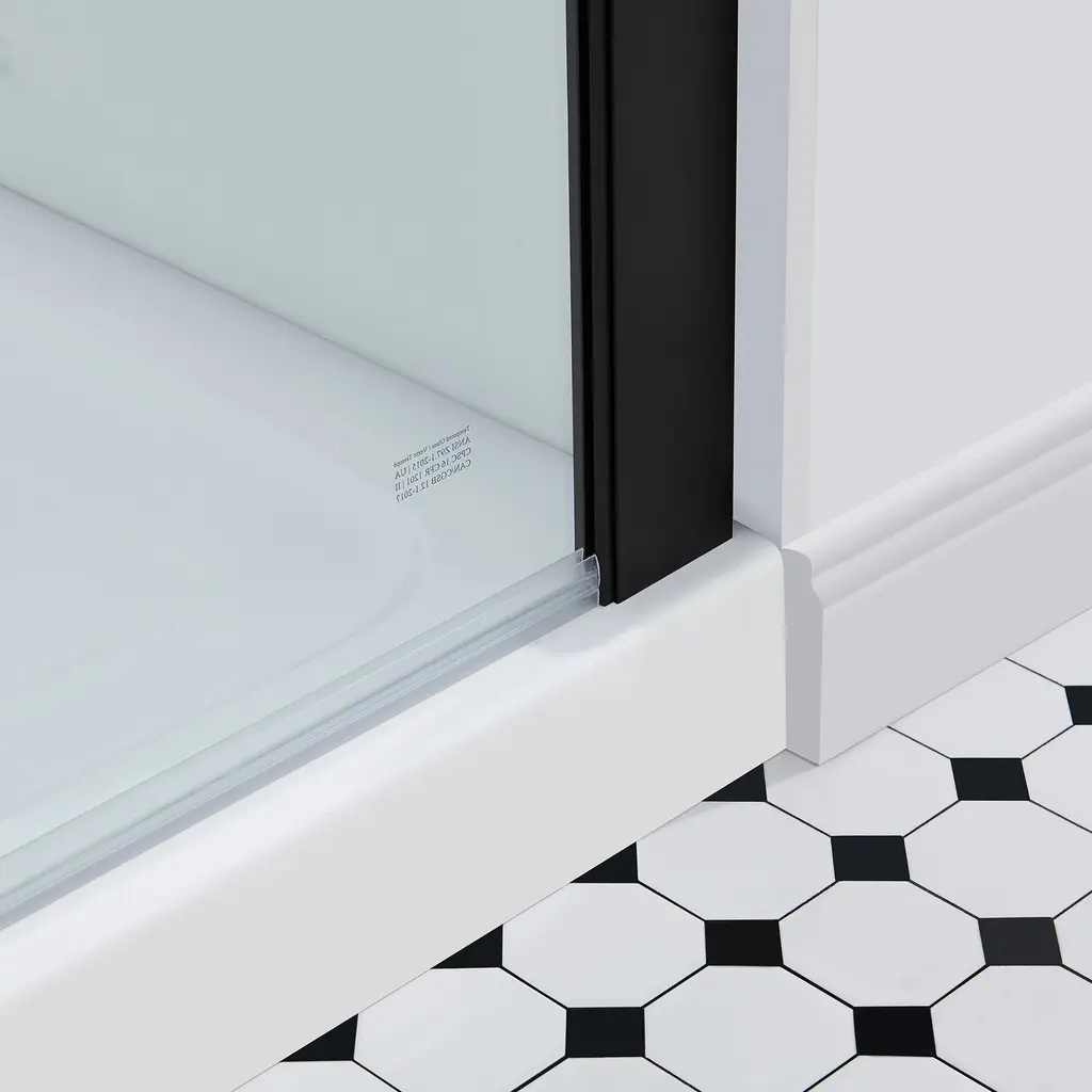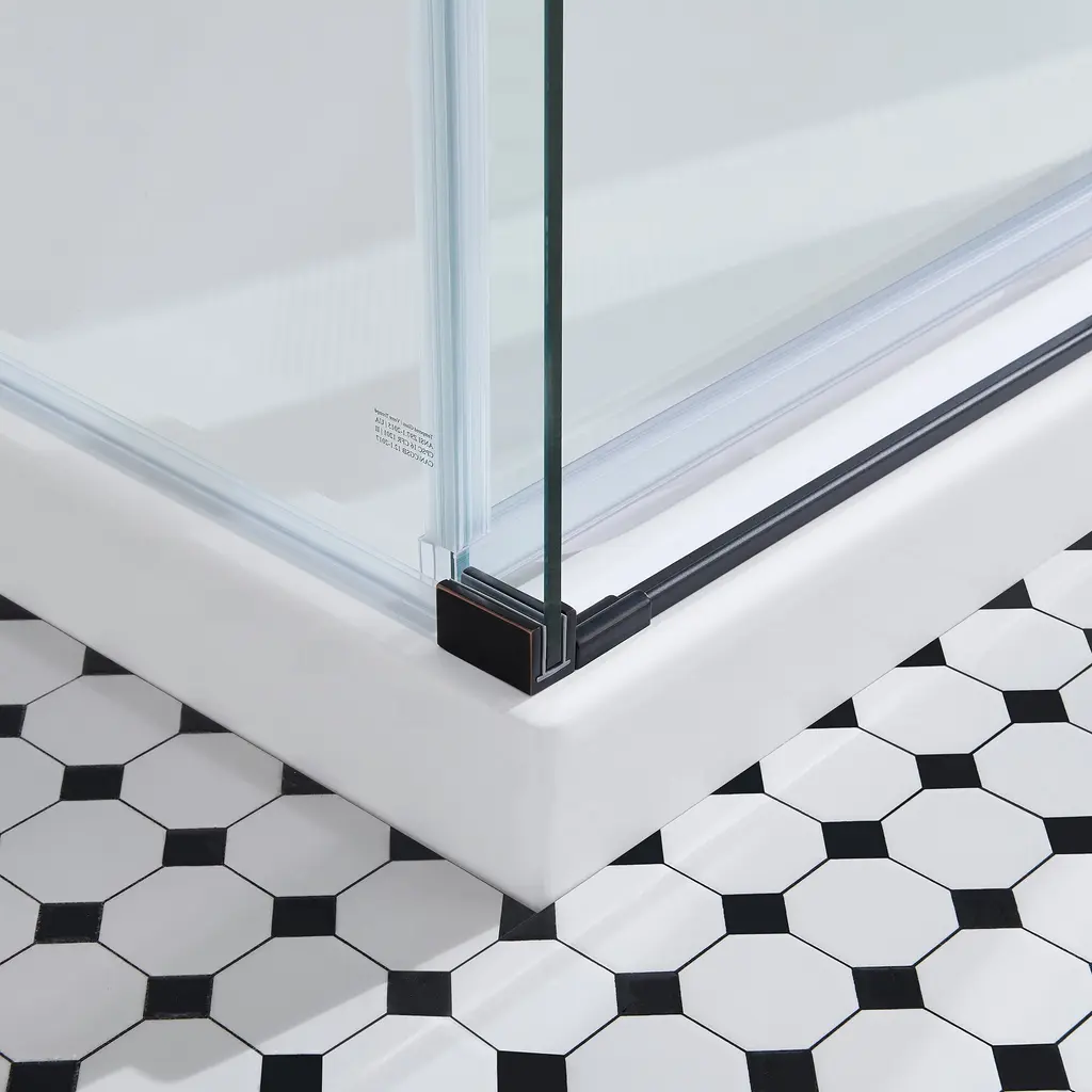 A modern classic, the Bel shower kit with soft-close door is guaranteed to take your bathroom to another level of luxury. The door panels have a modern frameless design with oversized vertical bar handles, dramatic roller accents and crystal clear, high-end, 8mm tempered glass panels. The side panels are made from the same premium tempered glass, comfortably accommodating for all corner installations, while the spa-quality shower base has an anti-slip finish and a sleek hidden drain design. The Bel soft close shower kit is available in widths of 48-in and 60-in, and polished chrome, satin nickel, matte black, and oil-rubbed-bronze.