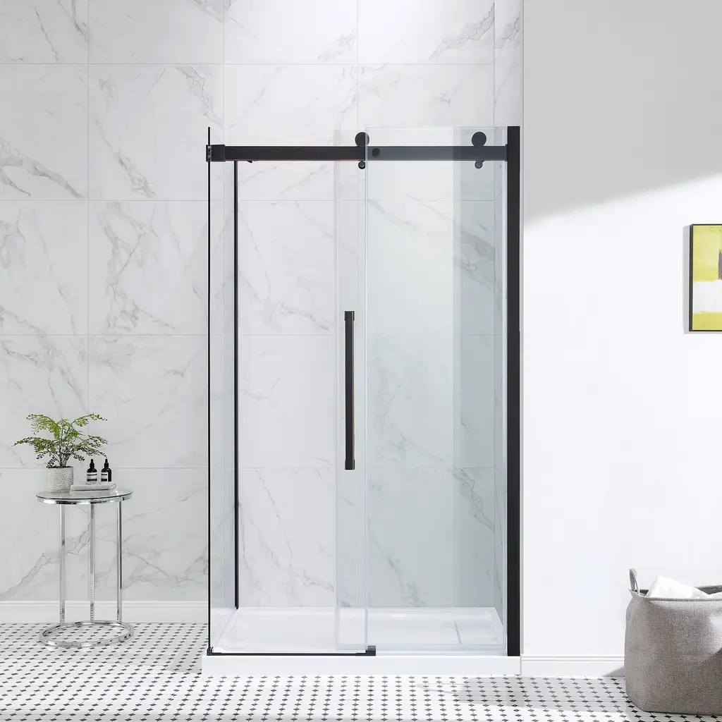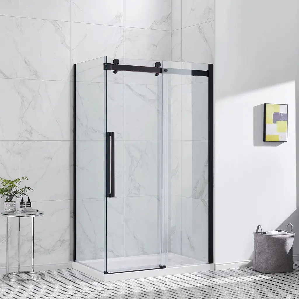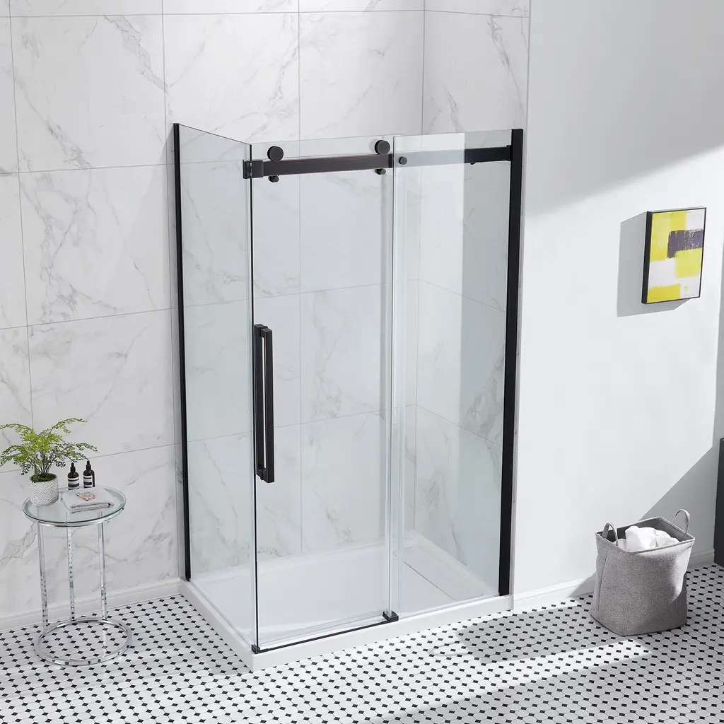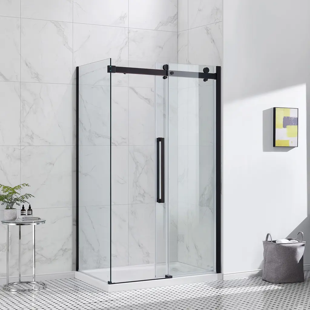 A modern classic, the Bel shower kit with soft-close door is guaranteed to take your bathroom to another level of luxury. The door panels have a modern frameless design with oversized vertical bar handles, dramatic roller accents and crystal clear, high-end, 8mm tempered glass panels. The side panels are made from the same premium tempered glass, comfortably accommodating for all corner installations, while the spa-quality shower base has an anti-slip finish and a sleek hidden drain design. The Bel soft close shower kit is available in widths of 48-in and 60-in, and polished chrome, satin nickel, matte black, and oil-rubbed-bronze.
