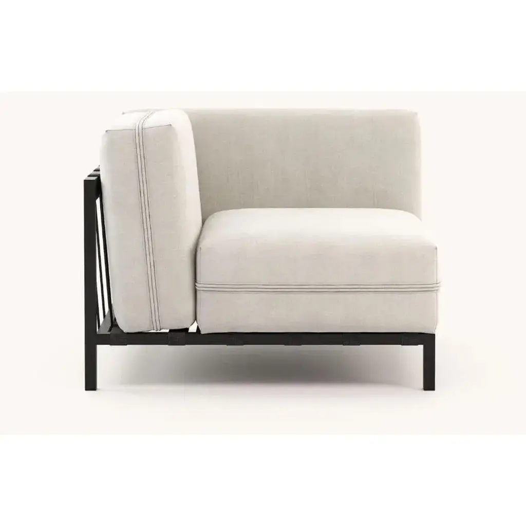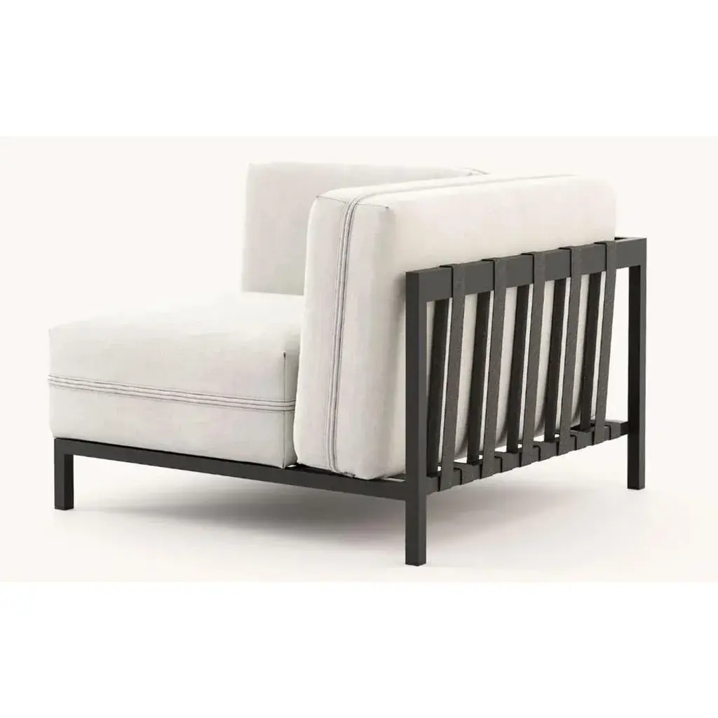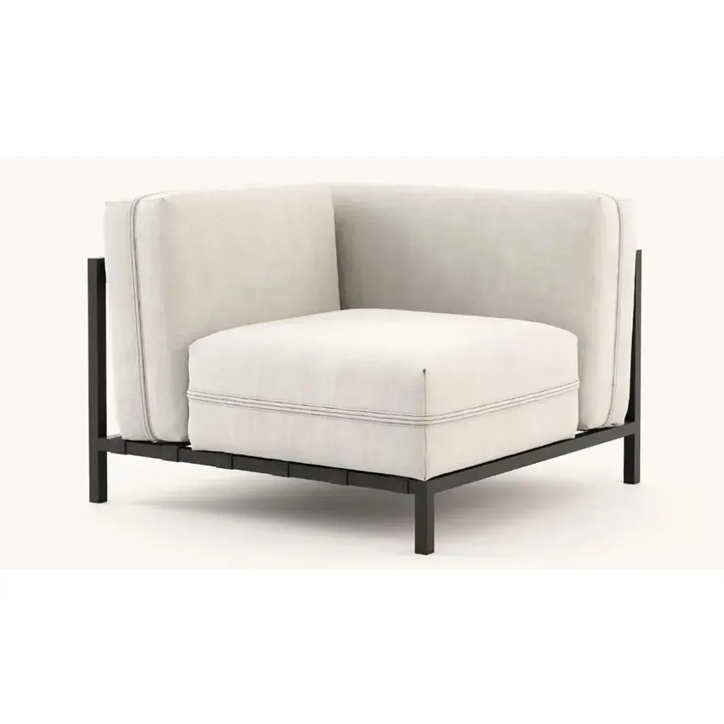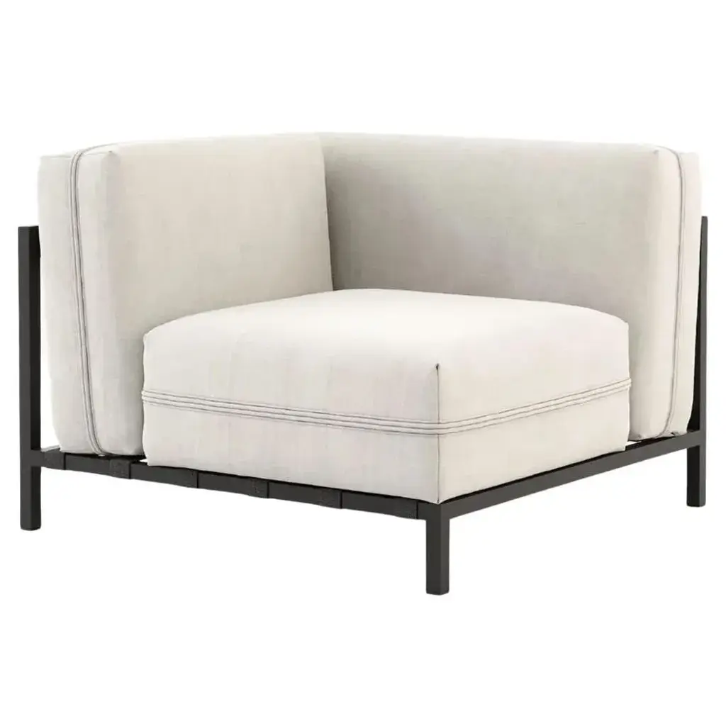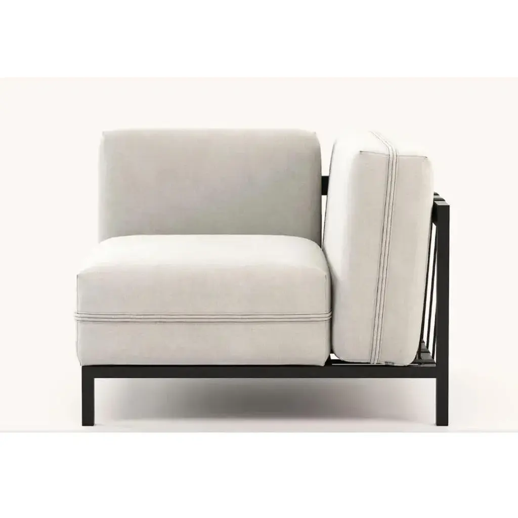 Bondi corner chair by Domkapa. Materials: black texturized stainless steel, fiber (Drava Nata). Dimensions: W 95 x D 95 x H 72 cm. Also available in different materials. The highly flexible design of the Bondi Corner Chair invites you to combine this furniture piece with modules, including the Bondi Middle Sofa and the Bondi Pouf. Domkapa holds a tremendous passion for detailed stitching, presenting several similarities to the haute-couture philosophy focused on the value of a “made by hand”.