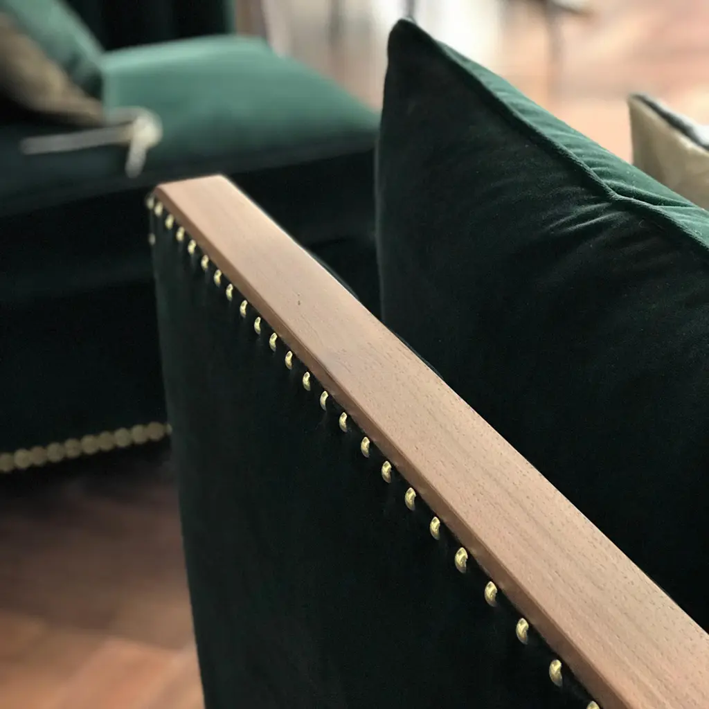 Also inspired by the masculine and desirable qualities of the roman god, cupid, the cupid corner armchair combines a fierce, glamorous aesthetic with a luxurious material composition to match. Made from high quality walnut, brass and velvet, the cupid corner armchair is robust, durable and timeless, just like the god who inspires it. Due to its ‘corner’ construction, there’s no need to worry about buying a left or right side. the cupid corner armchair will slot effortlessly into your existing living space. the result; an overall strong, masculine and seductive aesthetic. the cupid corner chair and sofa are handcrafted in the uk with impeccable attention to detail. dimension corner chair: 75 (w) x 75 (d) x 70 (h) cm – (sh 45 cm) armchair: 75 (w) x 75 (d) x 70 (h) cm – (sh 45 cm) two-seat sofa: 1.6 (w) x 80 (d) x 70 (h)cm – (sh 45 cm)