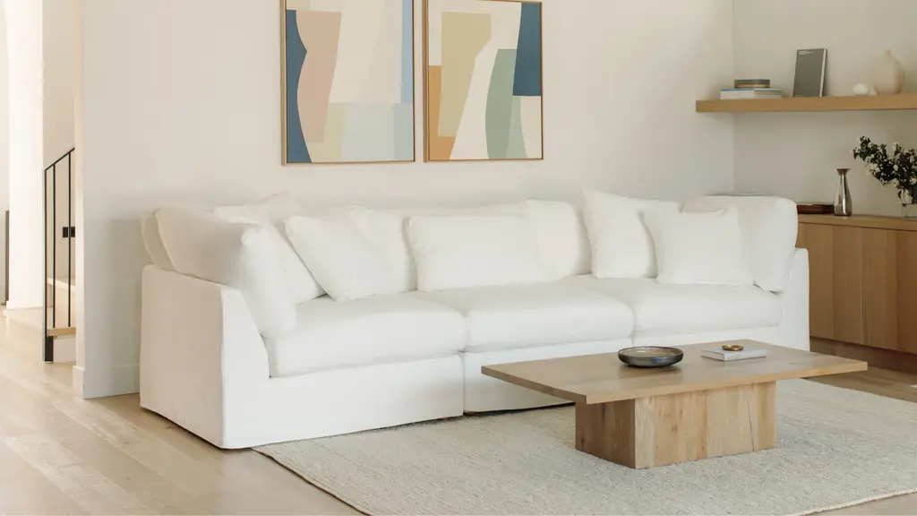 Effortless look. Effortless comfort. Effortless care. Our best selling Get Together collection pairs a relaxed look with soft-yet-supportive cushions that hold their shape—minimal fluffing required. This modular piece features deep seats, pillows that prop you up, and our signature stain-resistant fabric.