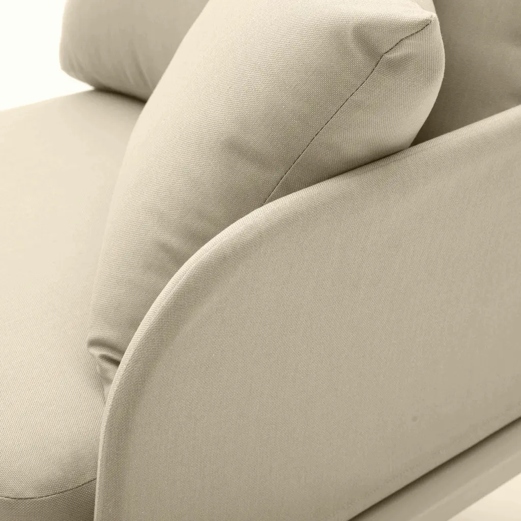 Lounge in luxury with the Kapri Outdoor Modular Collection, a dynamic design that offers endless configurations to suit any space. Crafted from rust-resistant aluminum, this collection ensures longevity and durability. With outdoor-grade fabric and metal finishing, a unique slipcover design for armrests and backrests, and a stylish monochromatic aesthetic with texture contrasts, Kapri brings both comfort and contemporary style to your outdoor retreat. Plus, the easy sectional setup with velcro eliminates the need for clunky tools, making it a breeze to create the perfect outdoor seating arrangement.