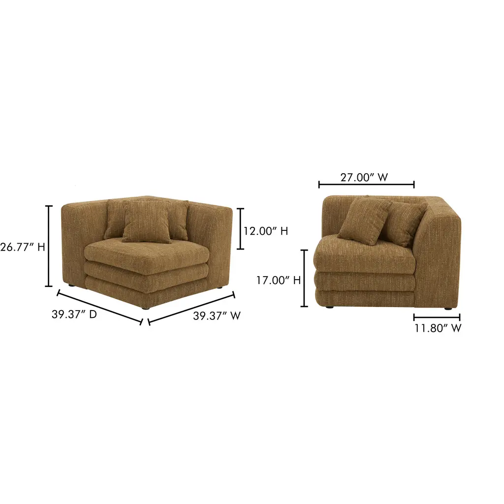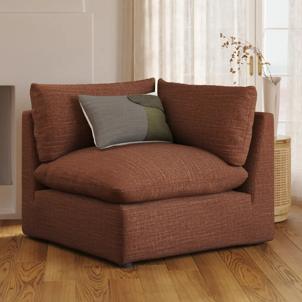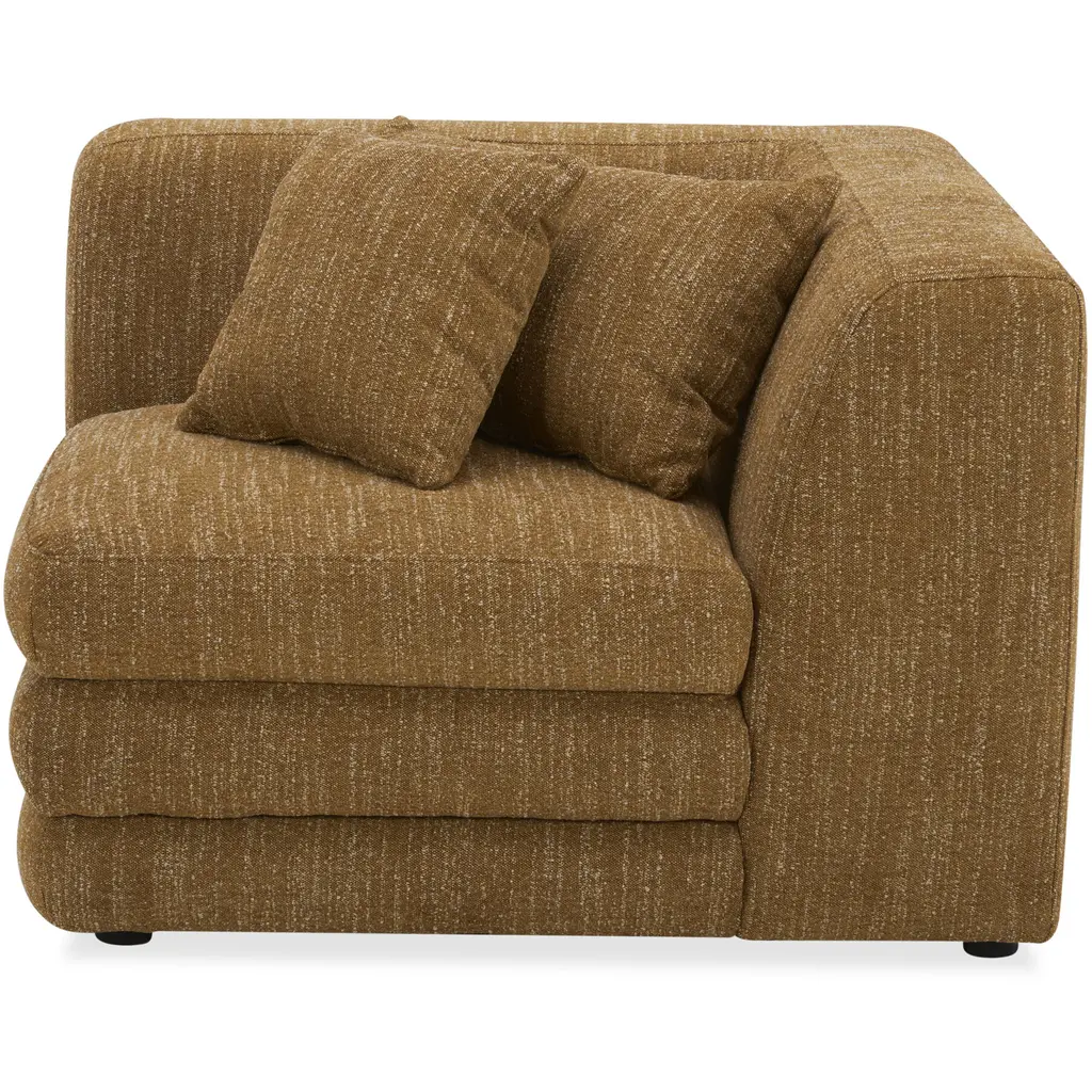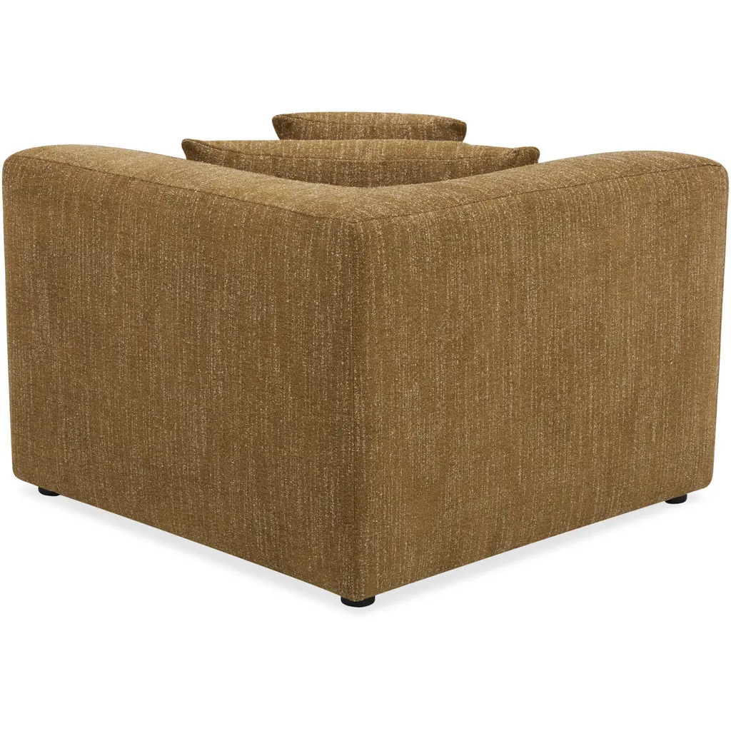 Influenced by the playful forms of the 1970s, the Lowtide corner chair showcases a layered appearance that promotes comfort. Its vintage influence and understated elegance are enhanced by the use of textured fabric. On its own or combined as a modular sectional, this piece adds visual interest while allowing for creative arrangement possibilities.