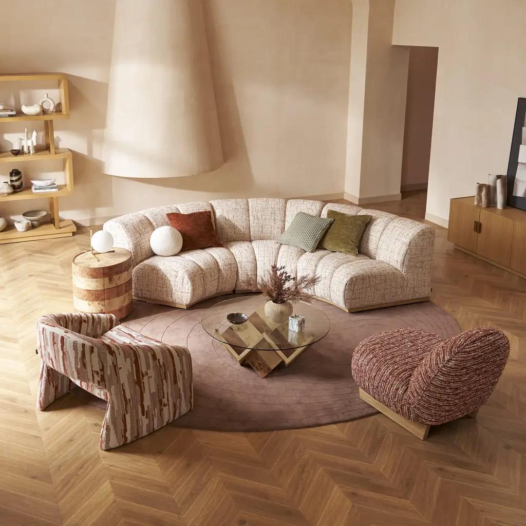 Marlow's duo-toned fabric artfully transforms a classic piece into an iconic one, with a curved silhouette that elevates your living room.
