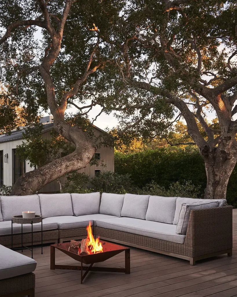 Woven from lightweight, synthetic wicker with matching outdoor cushions, this chair was designed and crafted especially for terrain. Each one is finished with a teak base that has been treated with a weather-resistant finish for years of outdoor durability.