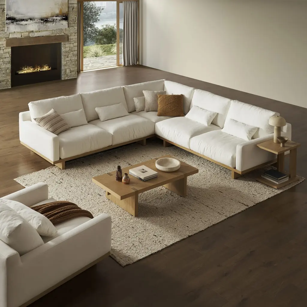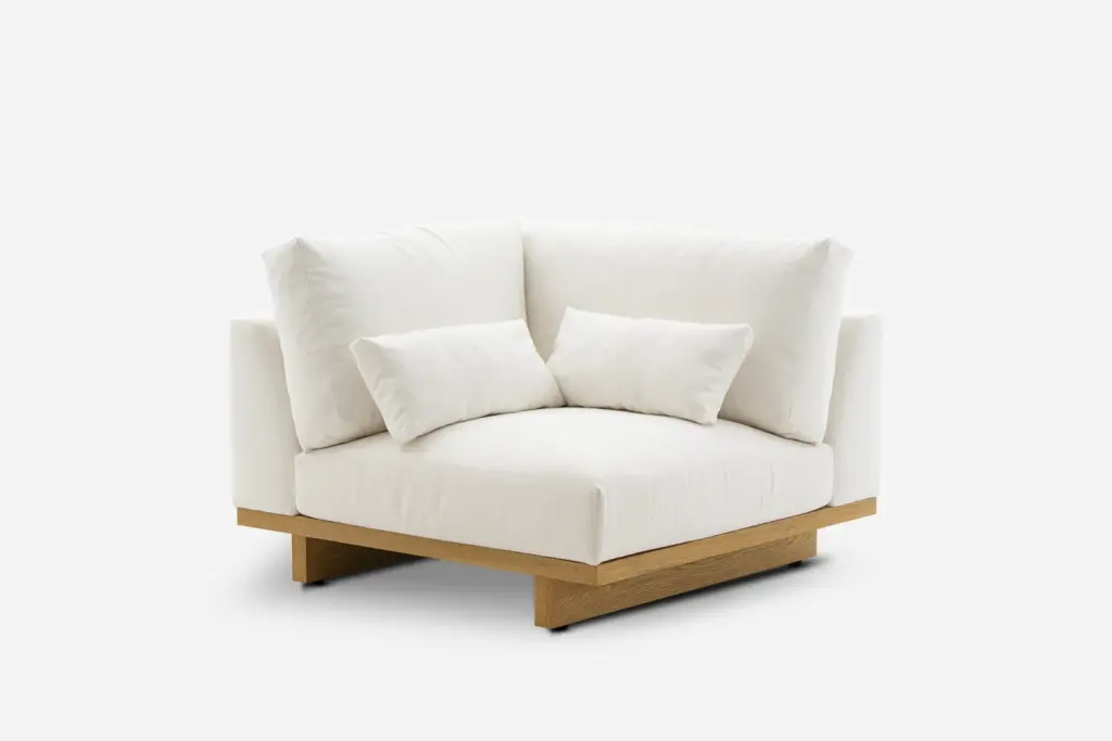 With a refined silhouette that sits low to the ground, Mori delivers a luxurious lounging experience with feather-filled seats.