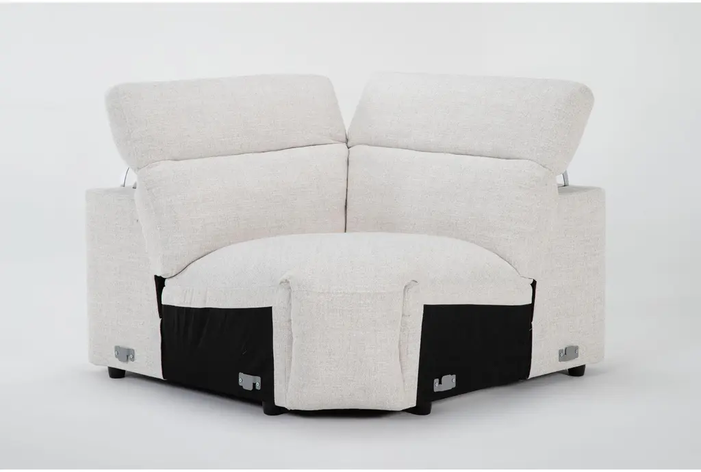 The Morro Bay II Beige Corner in Nathan wheat is a modern, modular seating solution designed for casual comfort. Upholstered in 100% polyester fabric, this piece combines contemporary style with soft, feather blend seating and power recline features, including power headrests.