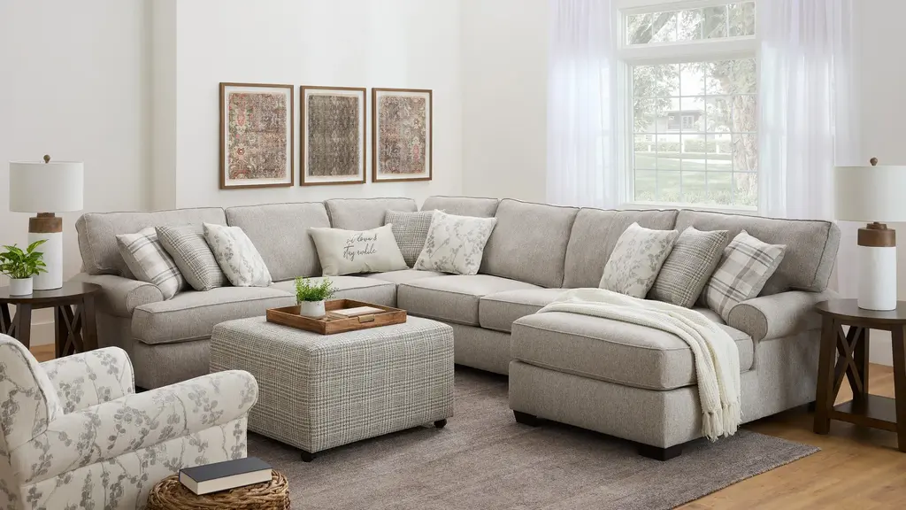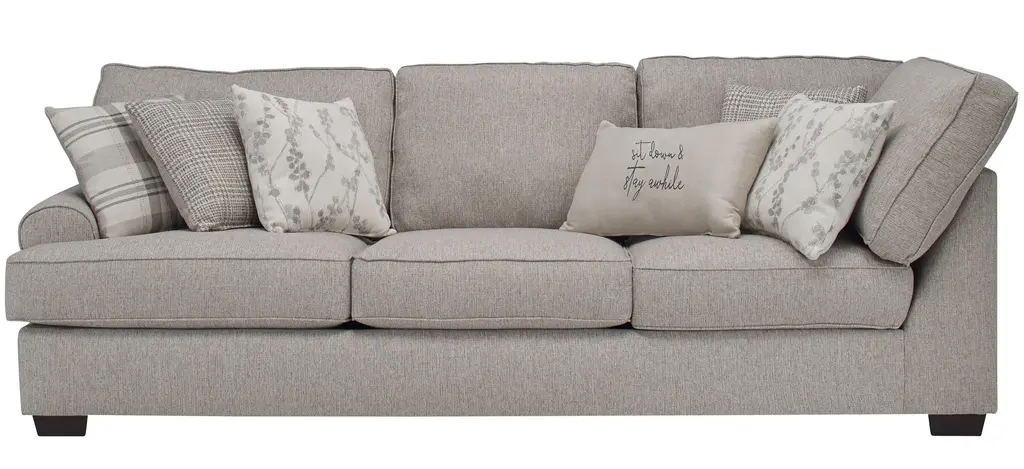 There is so much to love about the Suzanne sectional! With the casual elegance of a transitional design and featuring soft, neutral fabric, it's the perfect foundation for creating a warm and inviting atmosphere in your living room. The Suzanne corner is just one piece you can choose from to create the perfect configuration for your space. Accent pillows in complementary patterns are the crowning touch.