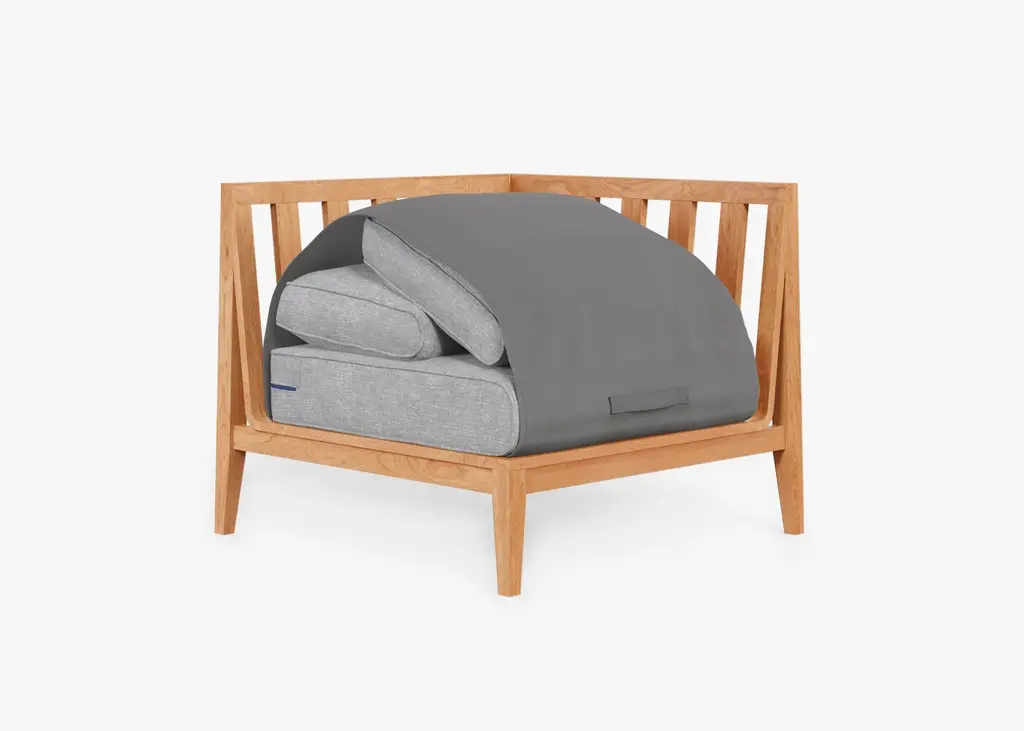 Enjoy indoor comfort outside. Timeless and crafted from naturally durable FSC® certified teak hardwood, Outer’s modular patio furniture invites you to relax on luxuriously comfortable memory foam cushions. The built-in, easy to use OuterShell® cover protects the cushions when not in use, and features Velcro to secure it in place and a handle for convenient transport and storage. No assembly required. Completes left side of sofa.