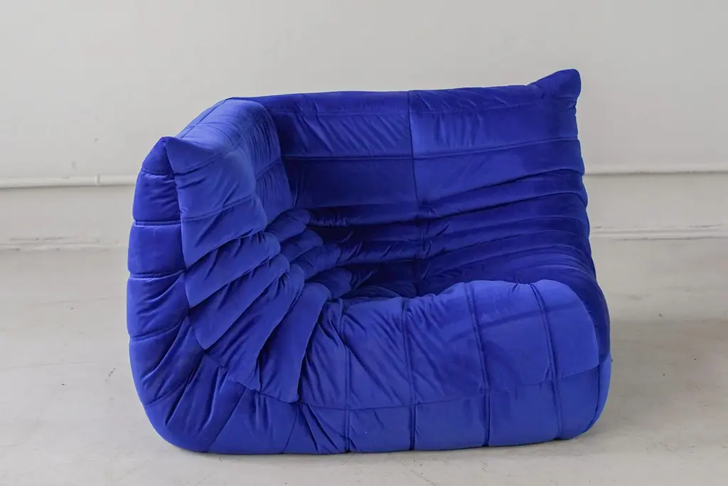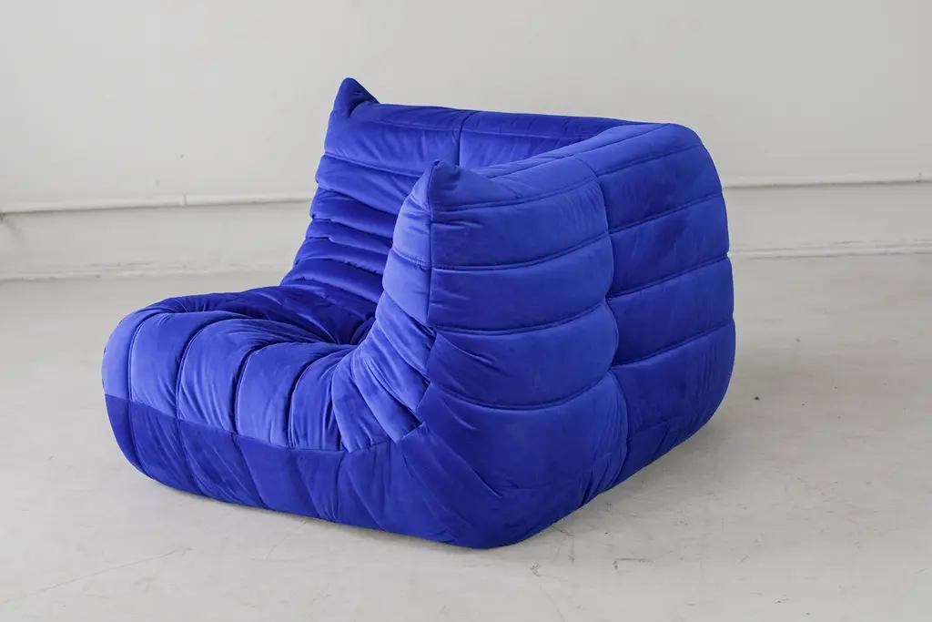 Togo Corner Chair In Blue Velvet By Michel Ducaroy For Ligne Roset