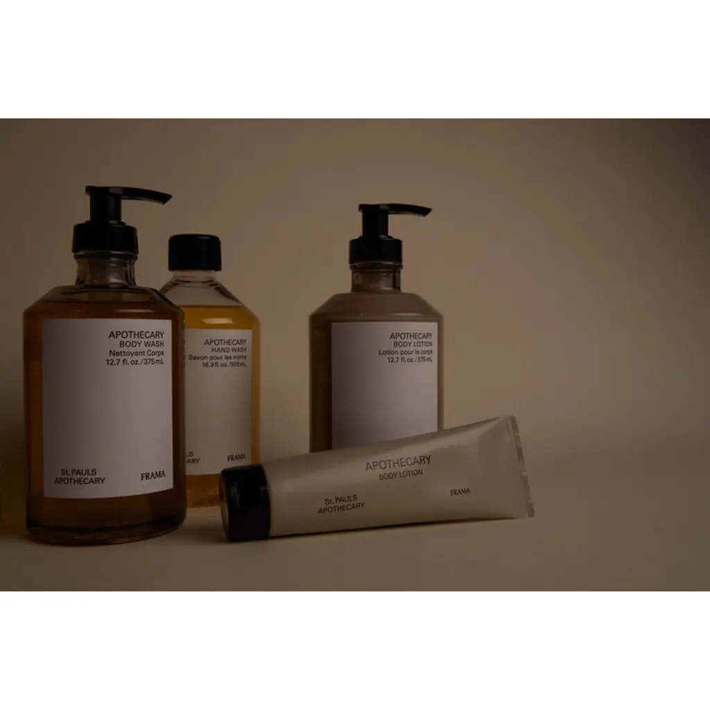 Frama’s Apothecary body lotion moisturizes the skin gently yet efficiently and leaves it feeling soft with a pleasant, light scent. Scented with Apothecary’s signature scent of sandalwood, cedar and ylang-ylang, the body lotion comes in a convenient tube that is easy to throw in your toiletry bag for traveling. Suitable for all skin types and daily use. Produced in Denmark. The St. Pauls Apothecary collection by Frama features luxurious wellness products made of natural and organic ingredients. Characterized by gender-neutral notes of pure essential oils, the products are vegan and cruelty-free. Ingredients: Aqua, Aloe Barbade, Carthamus Ti, Glycerin, Sodium Stear, Parfum, Glyceryl Stea, Cetearyl Alco, Prunus Amyg, Butyrosperm, Rosa Canina F, Limonen, Linalool, Tocopherol, Sodium Benz, Glycine Soja, Geraniol, Benzyl Benzo, Farnesol, Citral, Citric Acid, Potassium So, Benzyl Salicyl, Sodium Sulfit, Citronellol, Eugenol