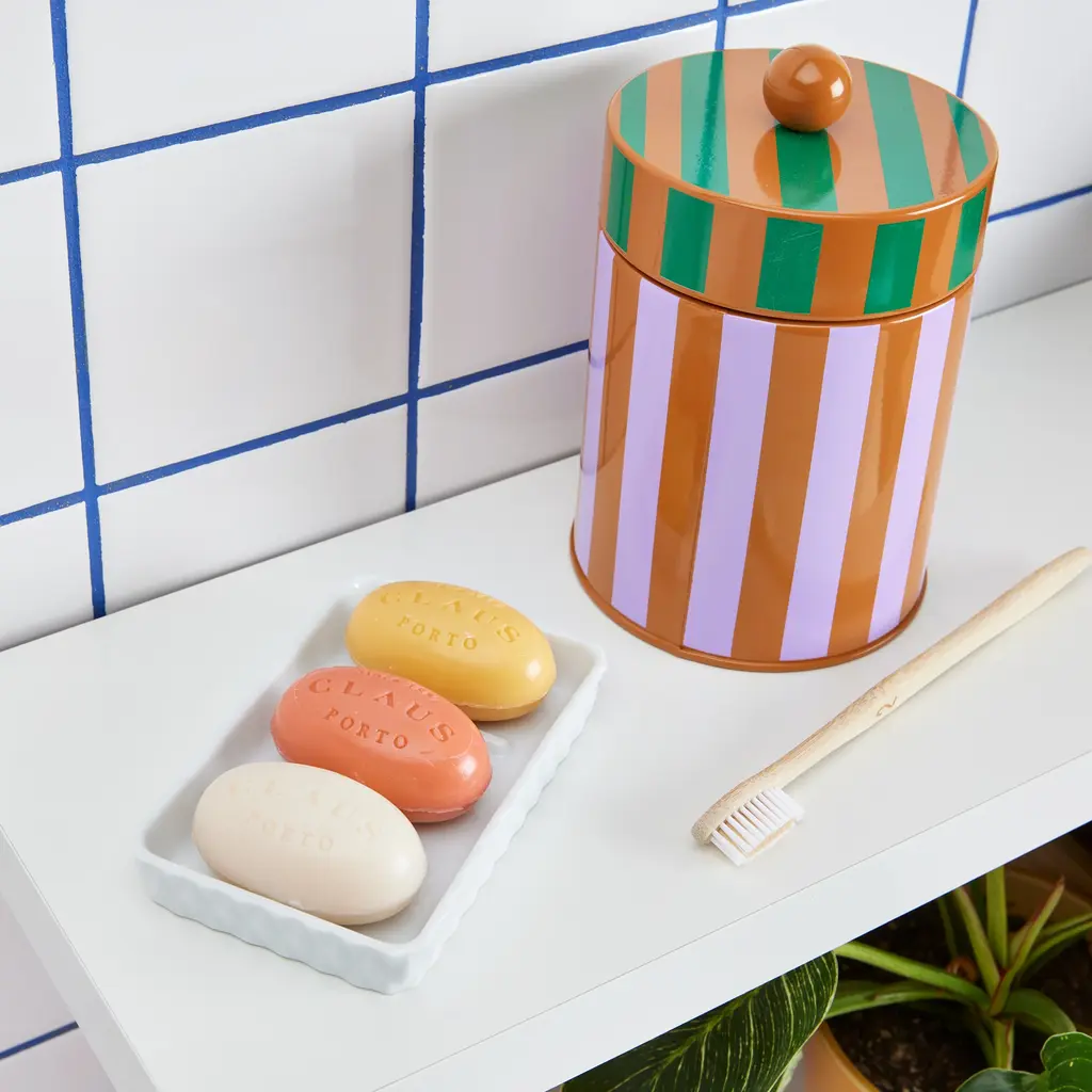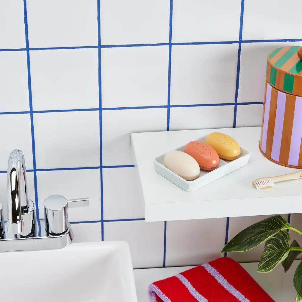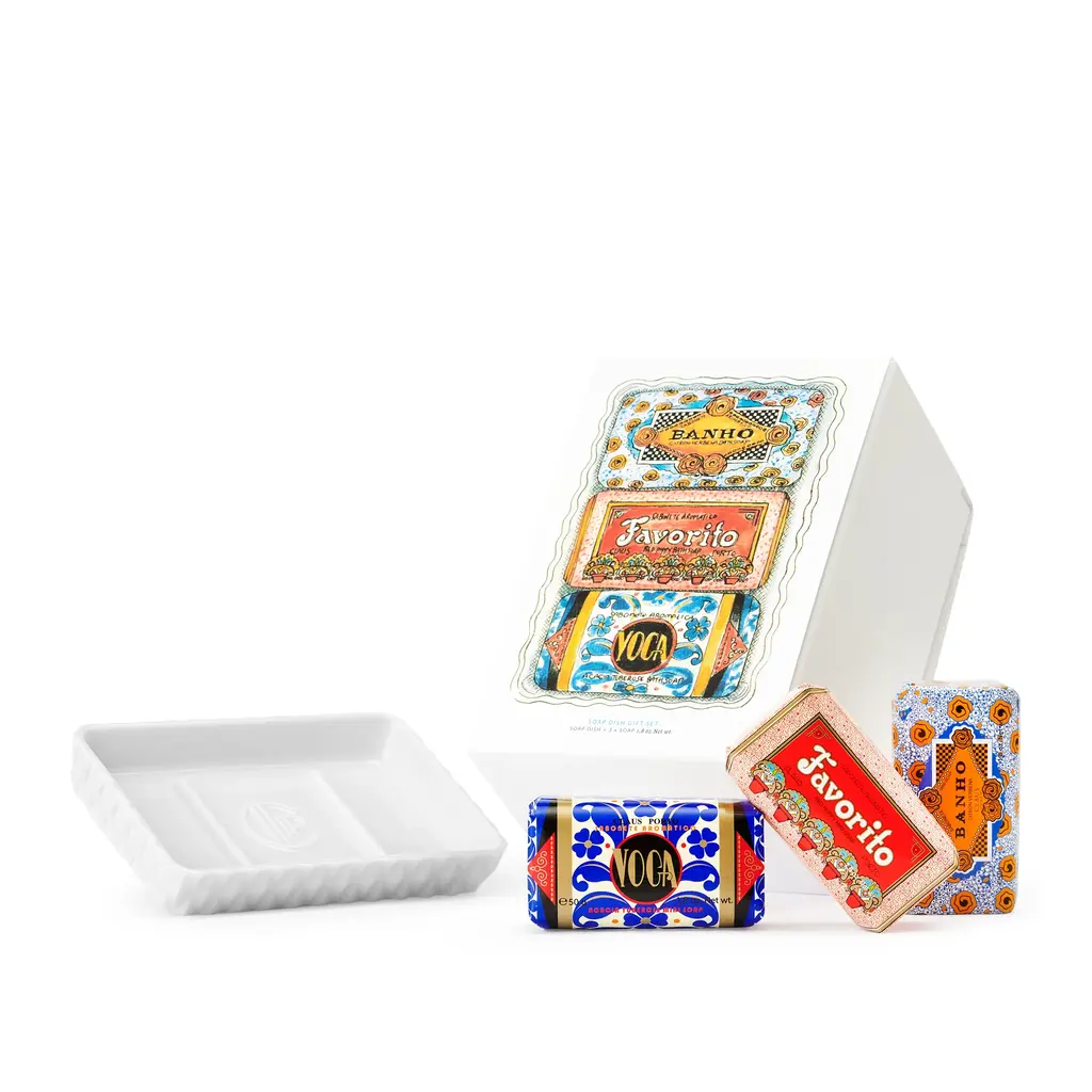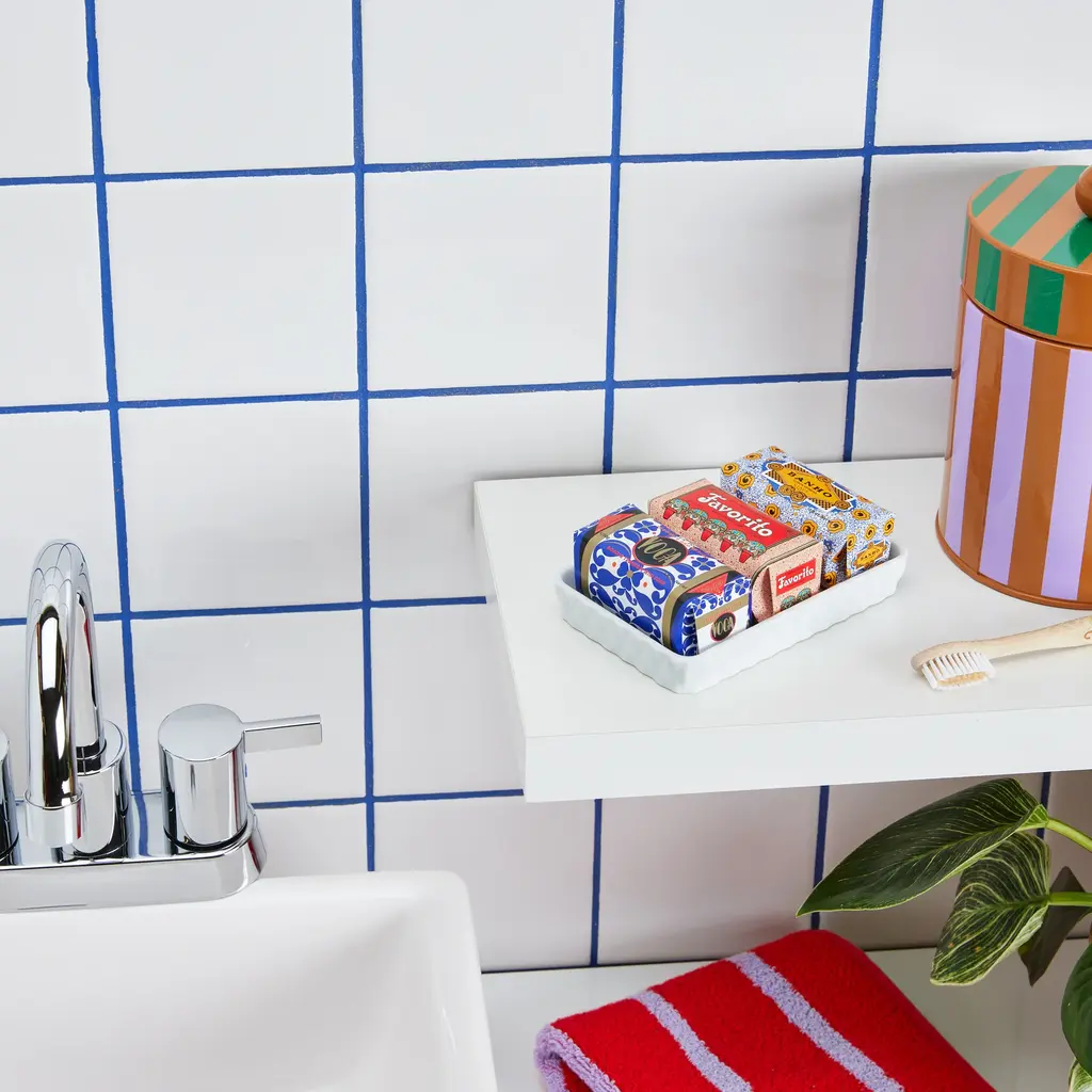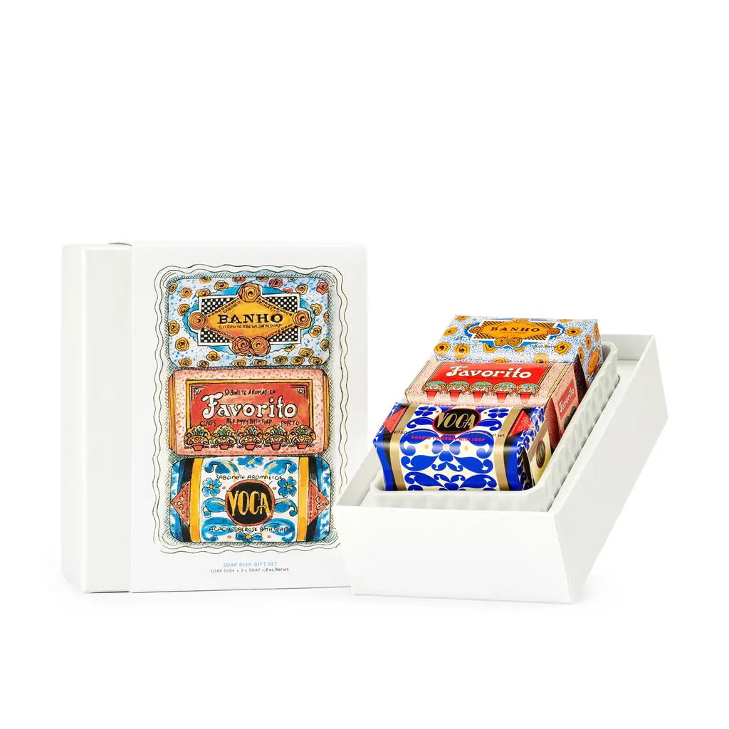 This set of three lightly scented mini soap bars is made in Portugal by Claus Porto, a company that’s been in business since 1887. Wrapped in Art Deco-themed packaging, the set makes a great host gift and will also look lovely displayed in your own bathroom. Includes one porcelain soap dish.