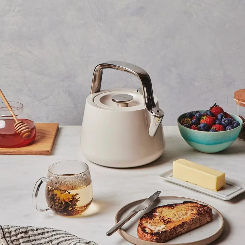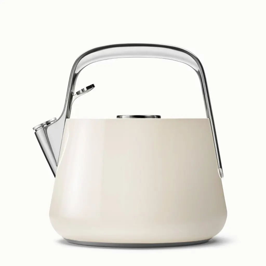 Caraway Home 64oz Whistling Tea Kettle Cream: Stainless Steel Stovetop Kettle With Hand Wash Care