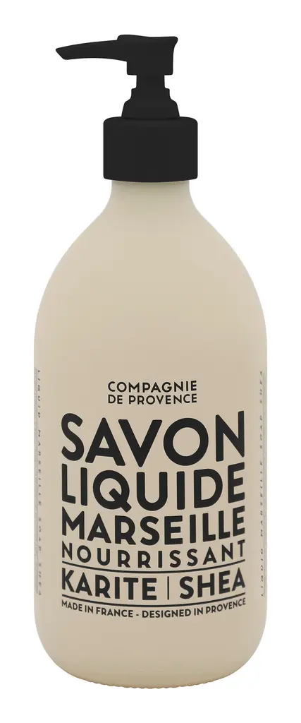 Show your skin some love with our beautifully scented Compagnie de Provence Soap Collection. These cleansers come to us from the historic city of Marseille, home of the iconic Marseille bar soap. A modern, updated take on this six-hundred-year-old favorite, these luxe liquid soaps are made with a carefully chosen blend of botanical oils and other naturally derived ingredients, all hand-mixed in a cauldron according to tradition. Unlike their unscented predecessor, this stunning collection features eleven gorgeous fragrances, each developed in Grasse and inspired by the south of France. Perfect for hands or body, we love our Compagnie de Provence Soaps in the shower or sitting sinkside in the kitchen or powder room for a quick wash up. Choose your favorite and bring a piece of Provence into your home. •enriched with botanical oils •made with 95% naturally derived ingredients •saponified in a cauldron according to tradition•scent created in grasse, france •recycled glass bottle Dimensions •3" diameter x 8.25"H •16.7 oz. SHEA BUTTER •scent: soothing blend of delicate white flowers and sweet musk•ingredients: shea butter, natural glycerine and coconut oil MARSEILLE WHITE TEA •scent: pure, authentic white tea mixed with notes of fresh citrus•ingredients: natural glycerine and coconut oil MARSEILLE BLACK TEA •scent: deep notes of black tea mingled with hints of fruity blackberry •ingredients: natural glycerine, coconut oil, sesame oil, organic apricot kernels, mediterranean olive seeds and honey from haute-provence