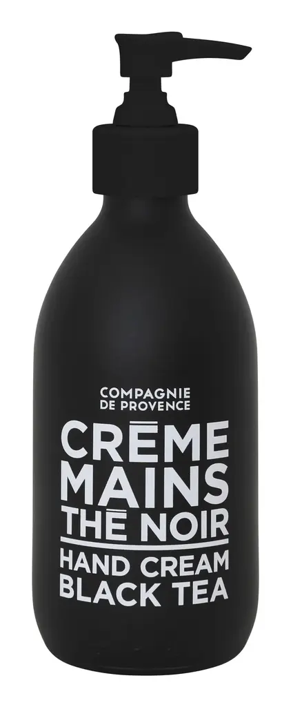 Treat your skin to our beautiful Compagnie de Provence Tea Hand Creams. Inspired by six hundred years of soap-making, these luxe lotions come to us from the historic city of Marseille, home of the iconic Marseille soap. There, they were made from a blend of natural origin ingredients, enriched with shea butter, Vitamin E and olive oil made from olives harvested and hand-pressed in Provence. The result is a light, non-greasy formula that quickly absorbs into the skin, leaving it feeling silky soft. Available in two subtle yet powerful fragrances, choose from delicate white tea mingled with a touch of fresh citrus or deep black tea blended with fruity notes of blackberry. Perfect for the hands or body, our Compagnie de Provence Tea Hand Creams also make a great gift for anyone that deserves a little pampering. •2.25" diameter x 7.25"H•10 fl oz •formulated with at least 94% natural origin ingredients •enriched with shea butter, PDO olive oil and vitamin E•recycled glass bottle with matte lacquered finish•pump dispenser •fragrance created in grasse, france Scents WHITE TEA: pure, authentic white tea mixed with notes of fresh citrus BLACK TEA: deep notes of black tea mingled with hints of fruity blackberry