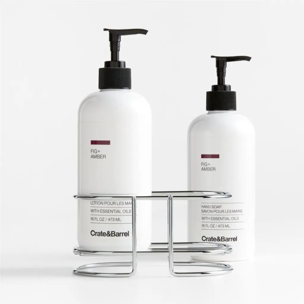 Fig + Amber Hand Soap And Lotion Set With Stainless Steel Caddy