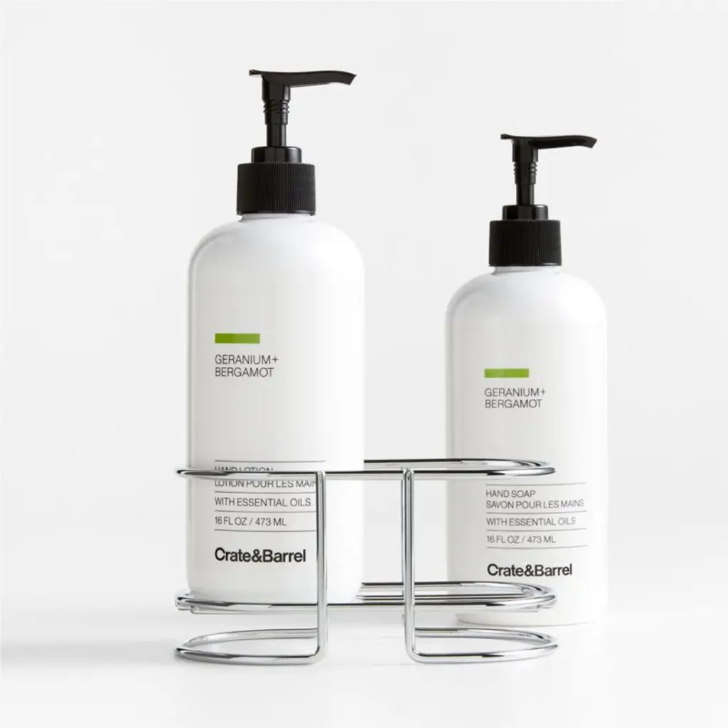 Geranium + Bergamot Hand Soap And Lotion Set With Stainless Steel Caddy