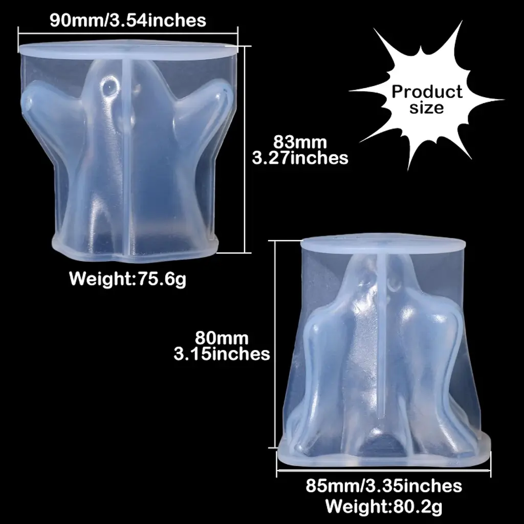 Jdiction 2 Pack 3D Ghost Resin Molds - Halloween Silicone For Epoxy Diy Crafts, Handmade Candle, Fondant Cake, Soap, Chocolate & Decor