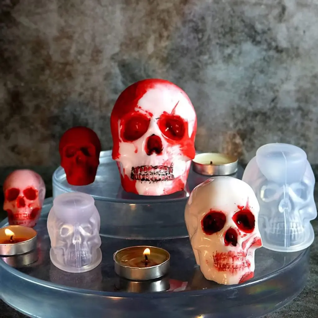 Jdiction 3D Skull Silicone Molds Set - Large Medium Small Clear Resin Molds For Halloween Decor, Soap, Clay & Candle Wax Casting