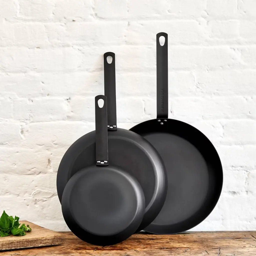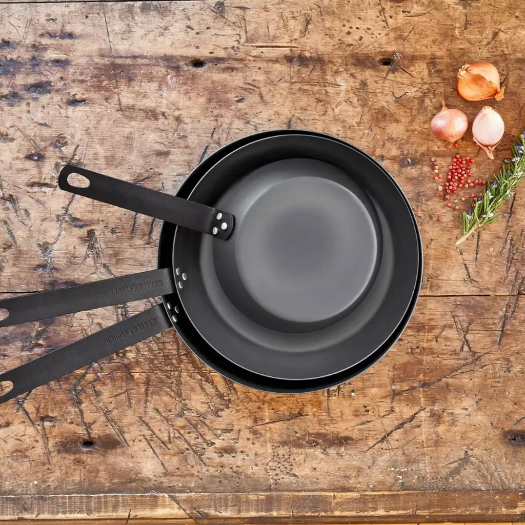 Merten & Storck Carbon delivers the rugged durability and natural nonstick patina of cast iron—but weighs 50% less. Crafted from black carbon steel for ultra-fast heating, it works great with any heat source from stovetop and oven to grill and even over open flame (hello, happy campers).Pre-seasoned and ready to use, this pan just gets better with age. You’ll love using it for everything from making omelets and sizzling up bacon to grilling sandwiches and frying fresh-caught fish. Forged by tradition since 1873, Merten & Storck cookware holds up to everyday use, delivering a lifetime of delicious meals.