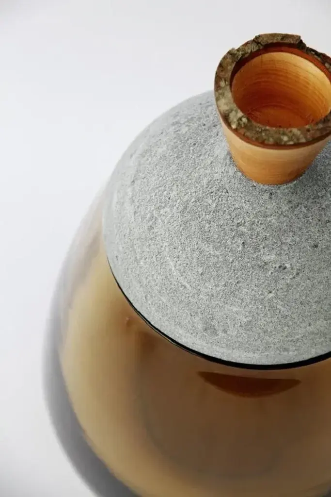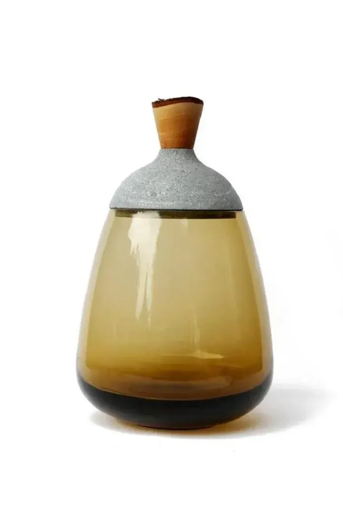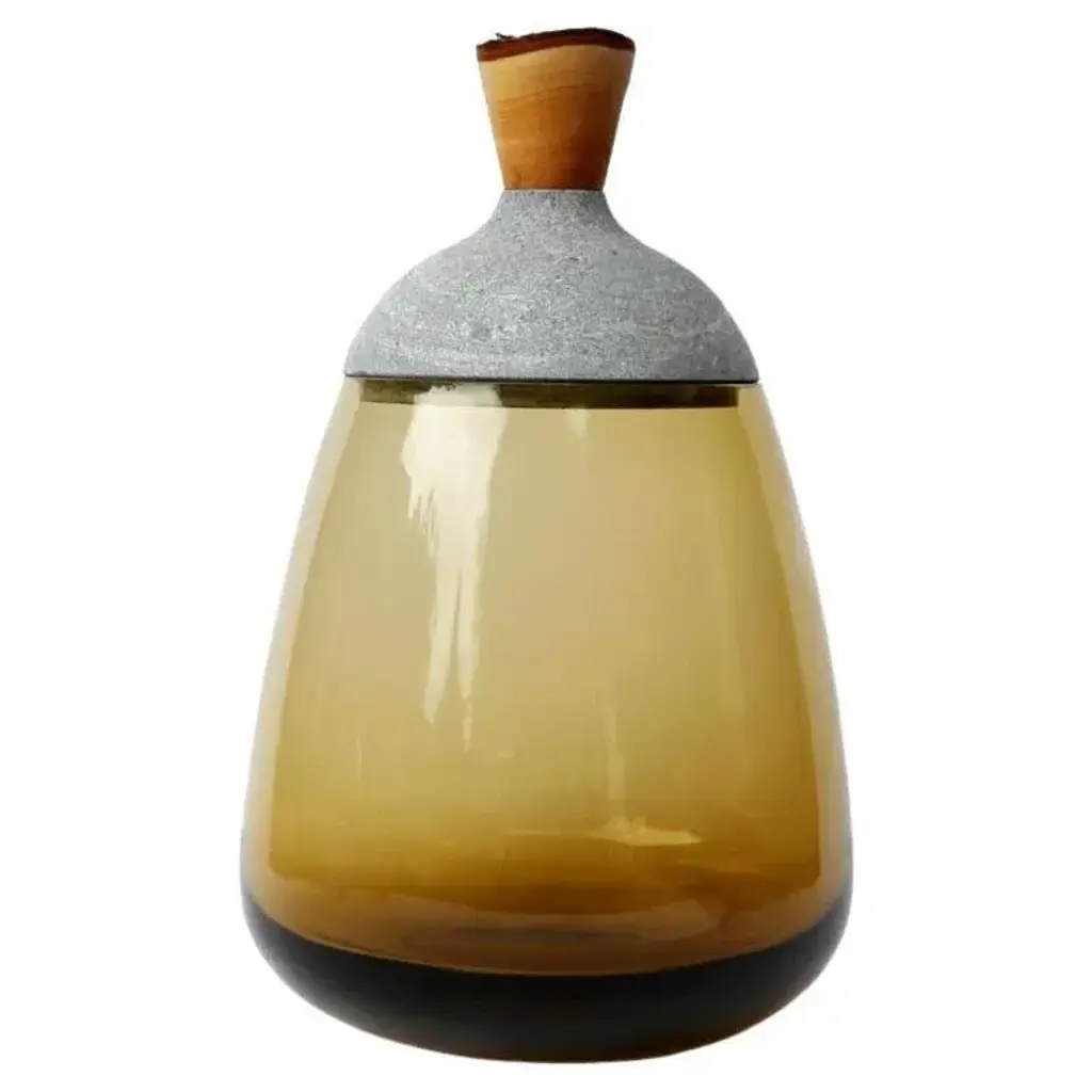 Olive and soapstone terra stacking vessel, Pia Wüstenberg Dimensions: D 23 x H 37 Materials: glass, wood, soapstone Available in other colors. Dense in its tones and materials, and in the same time refined in its composition, Terra is an ode to the tactile and tangible earth. Bringing together the fragile lightness of glass and the ancient prestige of stone, our new Terra continues the pursuit of European sustainable luxury. This piece is attributed to the mentioned designer/maker. It has no attribution mark and no official proof of authenticity, however it is well documented in design history. I take full responsibility for any authenticity issues arising from misattribution