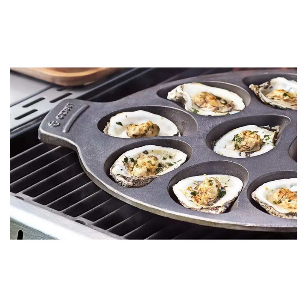 The world is your oyster! OK, maybe not the whole world, but this pan is your oyster. Use this versatile 12-section pan to grill oysters on the half shell or shucked. Constructed of heavy duty cast iron, it features a seasoned, non-stick coating for easy release and cleaning. You can also use it to make single serving mac & cheese, drop biscuits, mini corn bread, and more. Fire up your creativity.