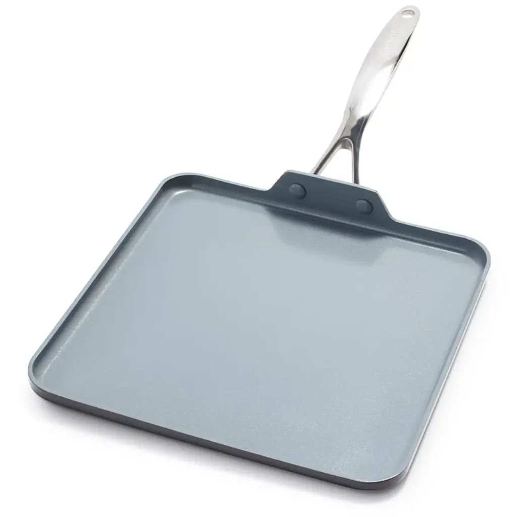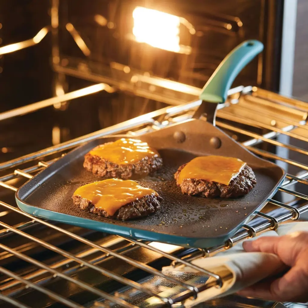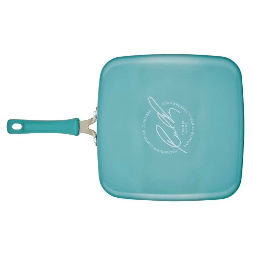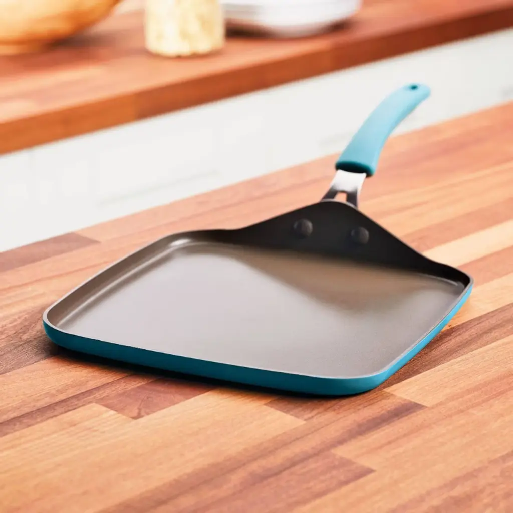 Rachael Ray Cook + Create Aluminum Nonstick Square Stovetop Griddle Pan 11" Agave Blue: Hand Wash, Gas & Electric Compatible