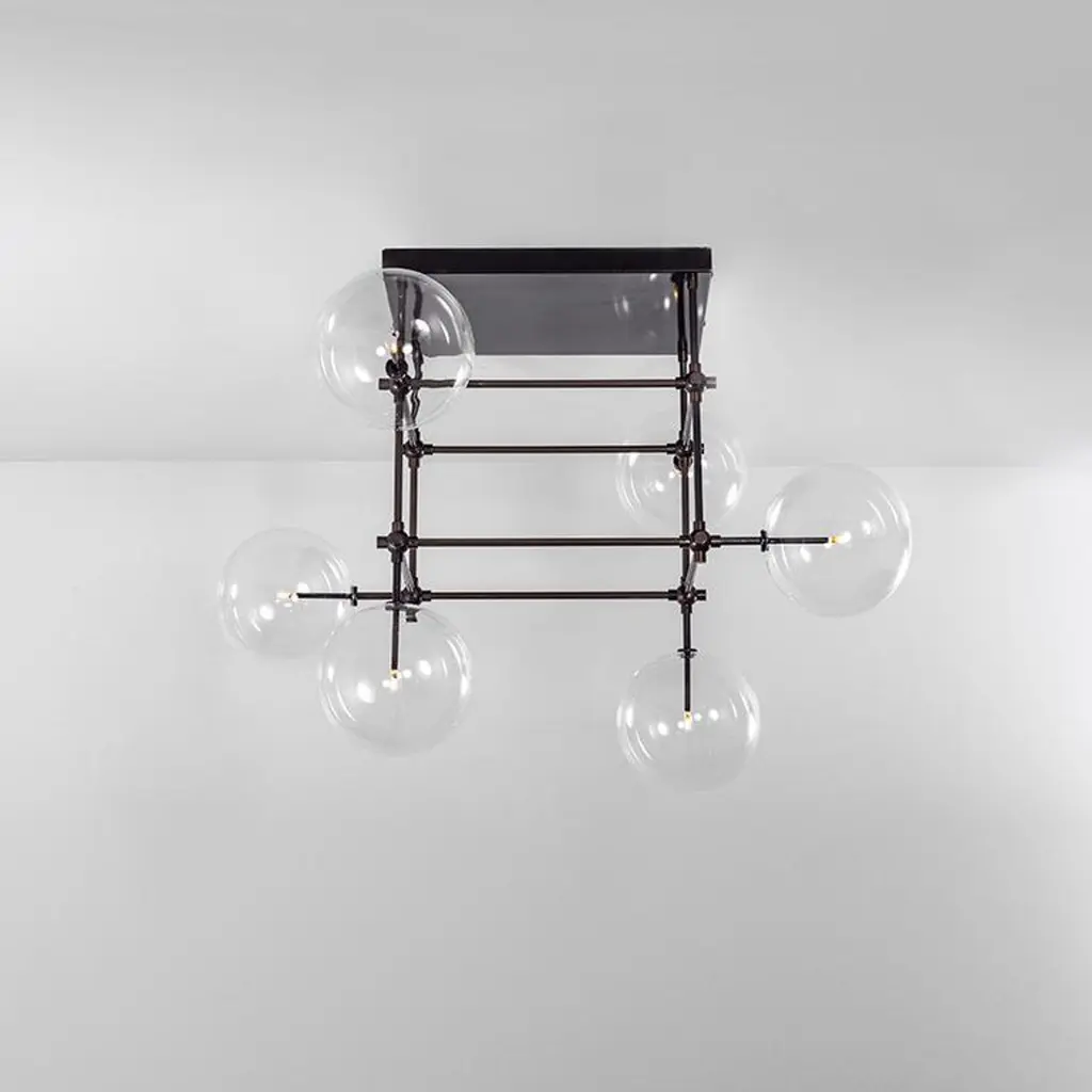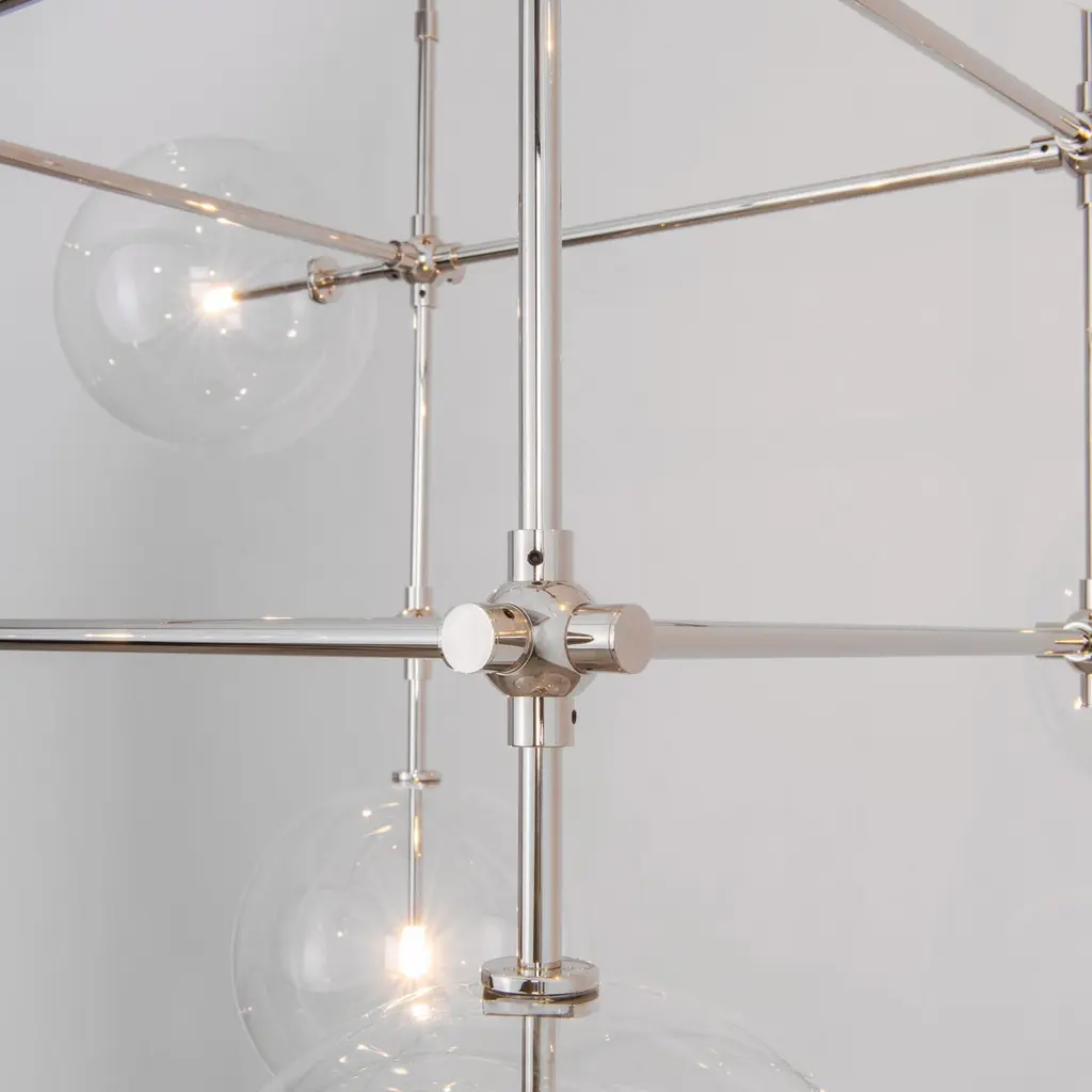 Soap 6 DT Chandelier by SchwungDimensions: W 117 x D 117 x H 173 cm Materials: Metal, hand blown glass globesFinishes: Polished nickelOther finishes available: Black gunmetal, natural brass Max wattage: 1.6WBulb base: G4, 12V ACLumens: 600lmColour temperature: 2700kMaximum bulb diameter: 10mm Schwung is a german word, and loosely defined, means energy or momentumm of a positive manner. synonyms: verve, zest, panache, momentum.MissionDeveloping lighting fixtures through simple and timeless materials, sustainably; We are committed to creating quality products that last. Beginning with the design we are constantly refining aesthetic and function. Both in the lamps themselves and throughout the manufacturing process we pursue a holistic approach to efficiency, and the reduction of environmental impact.ConceptSchwung is a lighting concept, connecting aesthetic and quality through matter. An exploration of history, forms and function, elegantly fulfilling an essential need of modern life, capturing light. Our pieces play with architecture or create spaces of their own. founded by Dominique sente (belgium) and rudi nijssen (netherlands). What began as a curiosity for objects, a venture in collecting, curating and trading antiques—became a passion to create original designs.ProcessFrom the beginning, schwung home has striven for cutting-edge and quality lighting, handcrafted in europe. emphasising brass and glass, which are not only durable but can be reused indefinitely, our lamps are 98% recyclable. today the company operates out of an integrated design and manufacturing facility in poland. This local approach allows us to significantly shorten the product lead time and greatly improve quality standards.All our lamps can be wired according to each country. If sold to the USA it will be wired for the USA for instance.