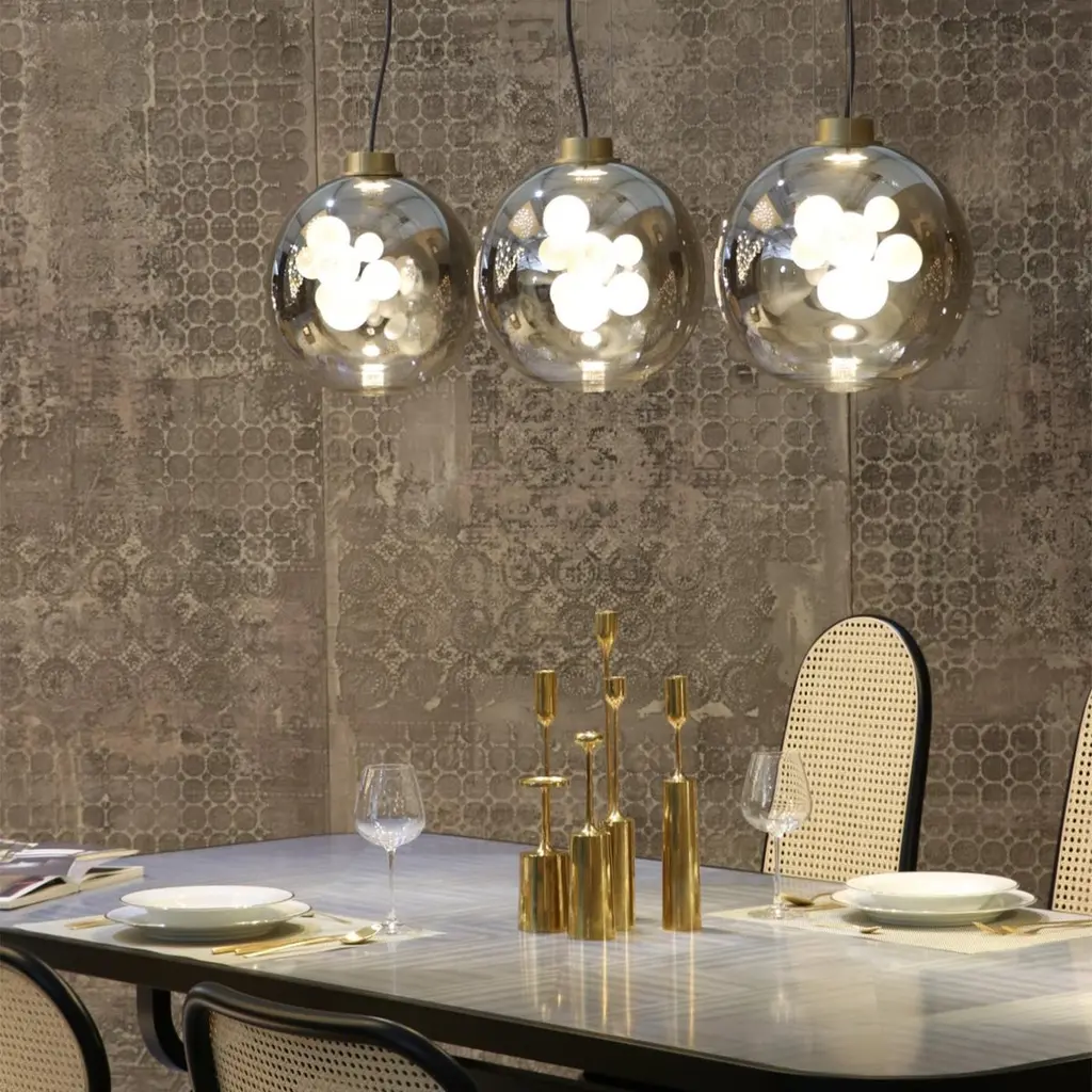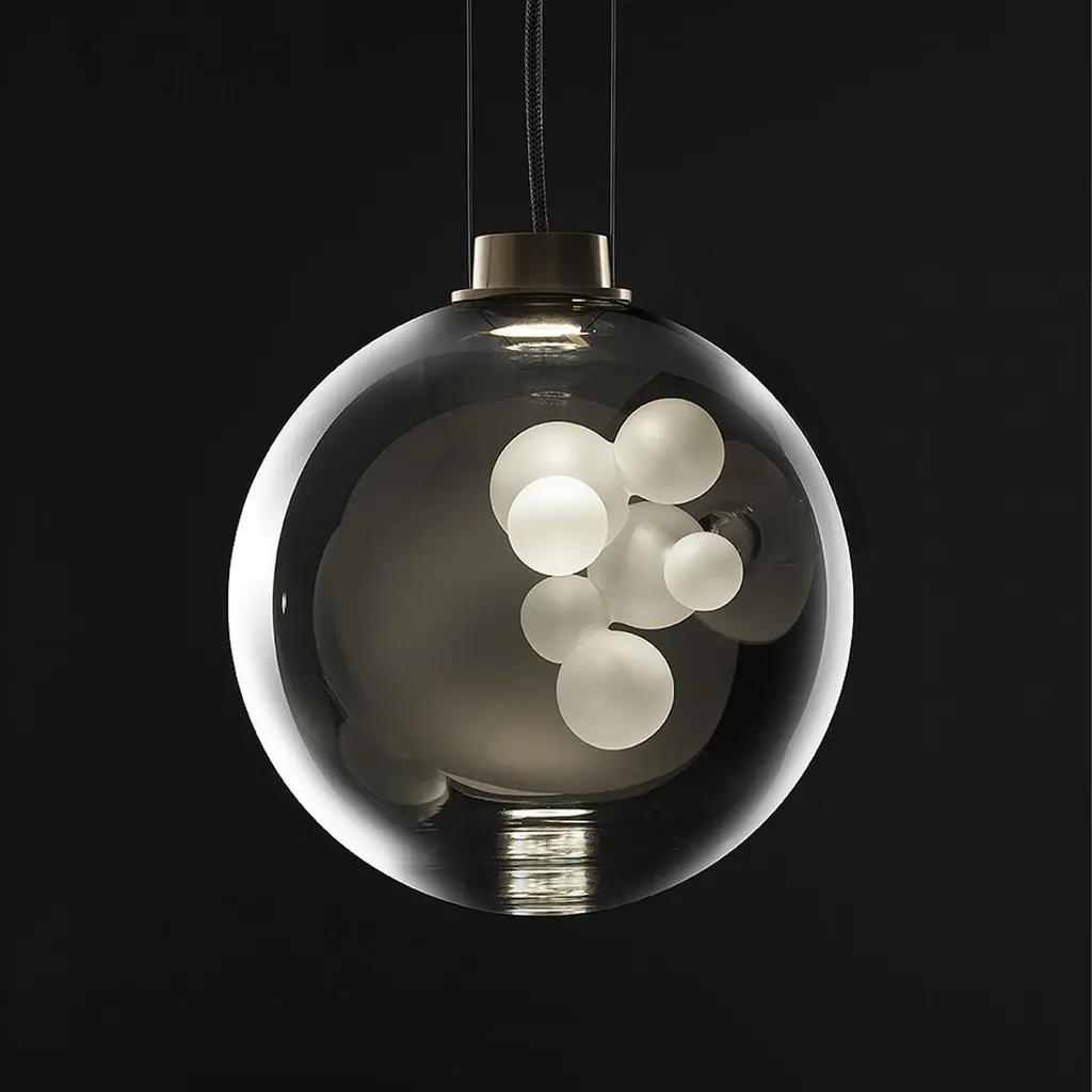 Soap Sphere, Melogranoblu, Suspension Lamp, Metallized Glass, Brushed Brass