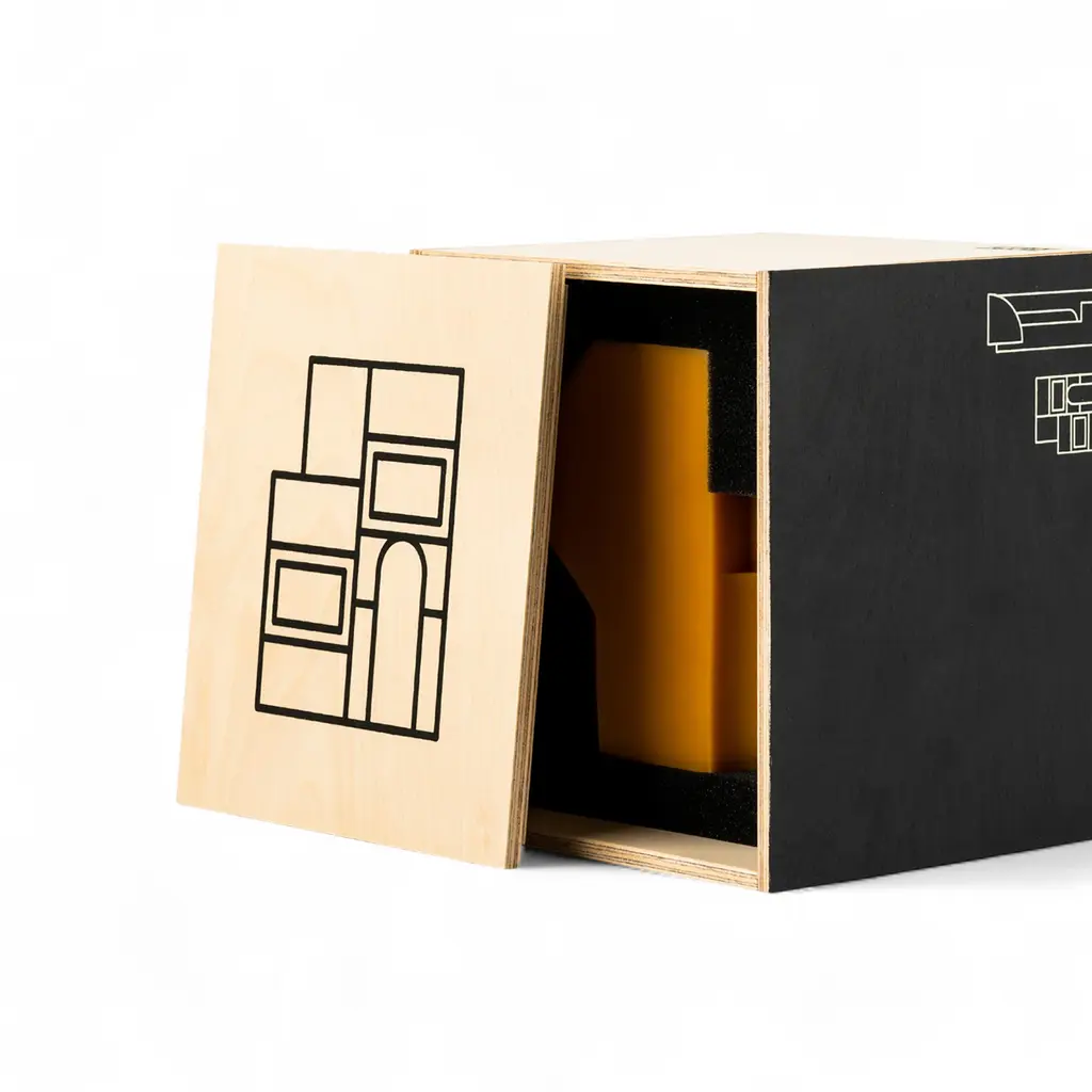 Does it really smell like old books? Yes—dry paper and wood shavings at first strike, then rose and lily soften into vetiver, sandalwood, and pine. From SOAPMEN’s Deconstructivism series with BOLTBOLT (Gallery), Candle 2 — Grafting stacks offset volumes into a mustard-yellow block that reads like an architectural model. It questions the usual “candle = cylinder” rule and leans into mood instead: library light at 4 p.m., card catalog drawers, dust on polished wood. The opening flashes tuberose, violetwood, and grapefruit-bright lift; the heart turns floral and quiet; the base lands warm, slightly resinous. Short sessions keep the papery top notes vivid; longer burns pull forward the woods.
