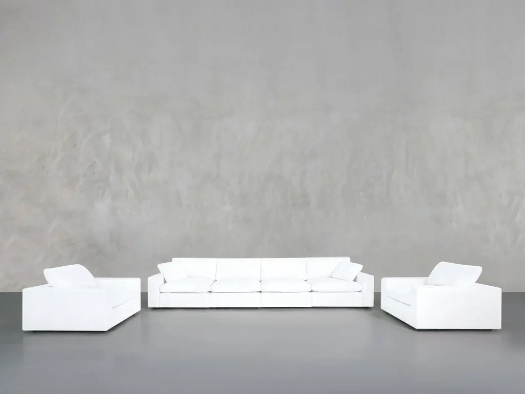 Introducing the 4-1-1 Modular Sofa & Armchair Set from 7th Avenue - a luxurious and modern four piece living room set with the perfect blend of comfort, durability, and style. This stunning set features a 4-seat modular sofa with 2 armchairs that offers premium seating for any space. Crafted from durable fabric and designed with inviting curves, this furniture is perfect for larger gatherings or accommodating big families. The individual pieces are versatile, allowing you to customize your own layout according to your lifestyle needs. Experience an atmosphere of luxury and sophistication when you lounge in these pieces - perfect for any home looking to upgrade their décor to something more contemporary and inviting.