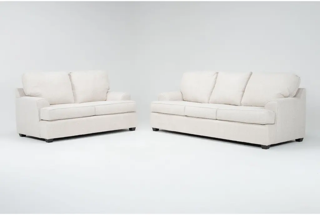 Basil Porcelain White Fabric 2 Piece Sofa & Armchair Set | Loose Reversible Back