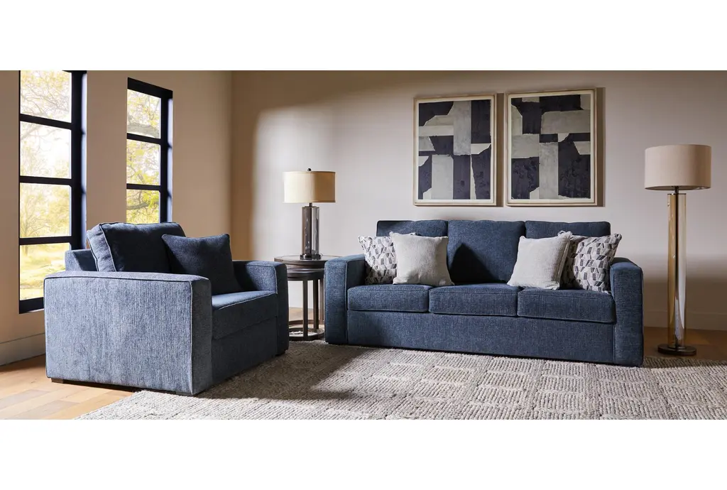 Monterey Twilight Blue Grey Fabric 86" 2 Piece Sofa & Oversized Armchair Set | Loose Reversible Back
