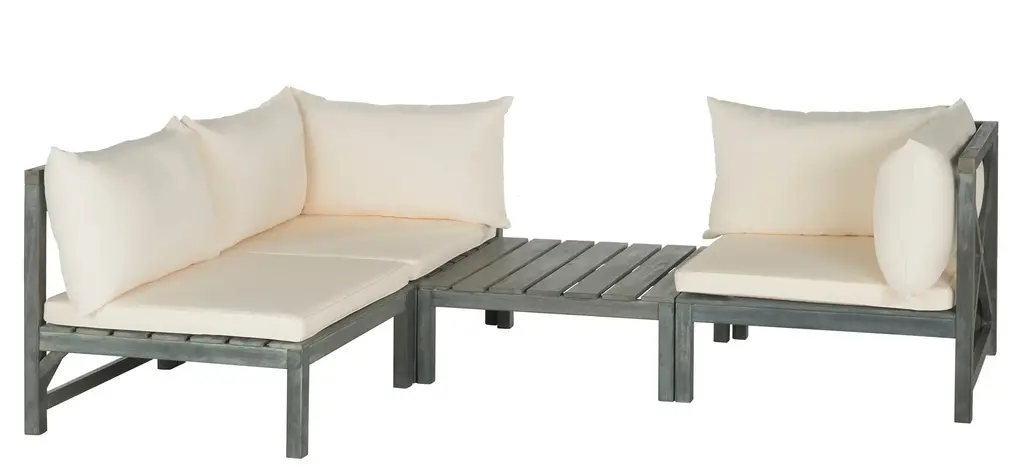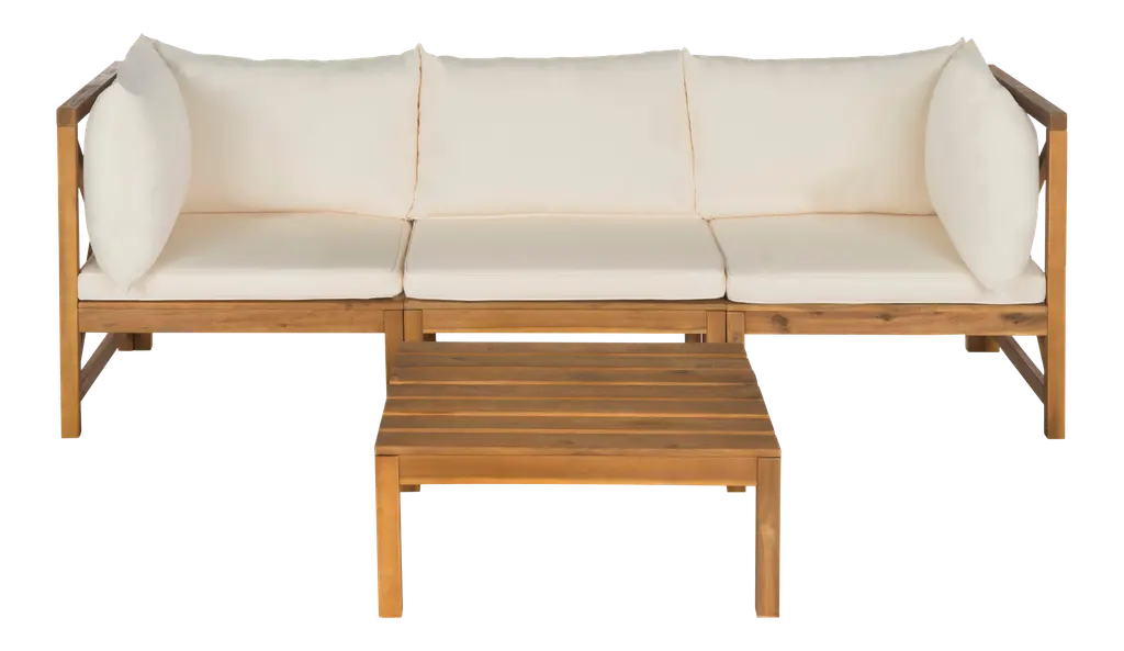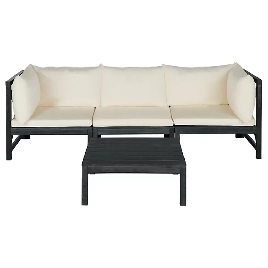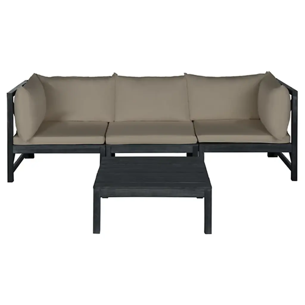 Ingeniously designed and fashion forward, the Kyoga outdoor sectional sofa set may be configured to suit your space and mood. With two corner pieces, an armless seat and slatted coffee table that doubles as an end table, the look is chic and comfortable.
