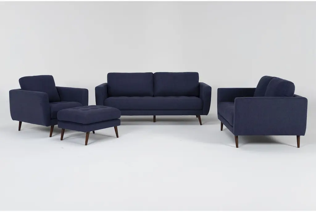 Ginger Denim Blue Fabric Sofa, Loveseat, Arm Chair & Ottoman Set