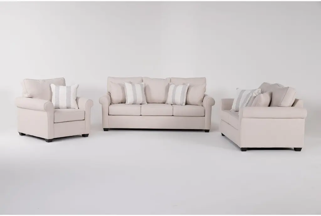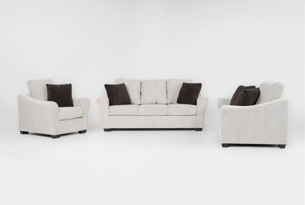 Bring clean lines and modern comfort to your living room with our inviting Shea collection. From extra cleanable, super durable 100% polyester upholstery in a neutral color, to seat cushions that welcome you to settle down and cozy up, these designs are made to be livable, functional and casual. Best of all, they’re offered at an unbelievably affordable price.