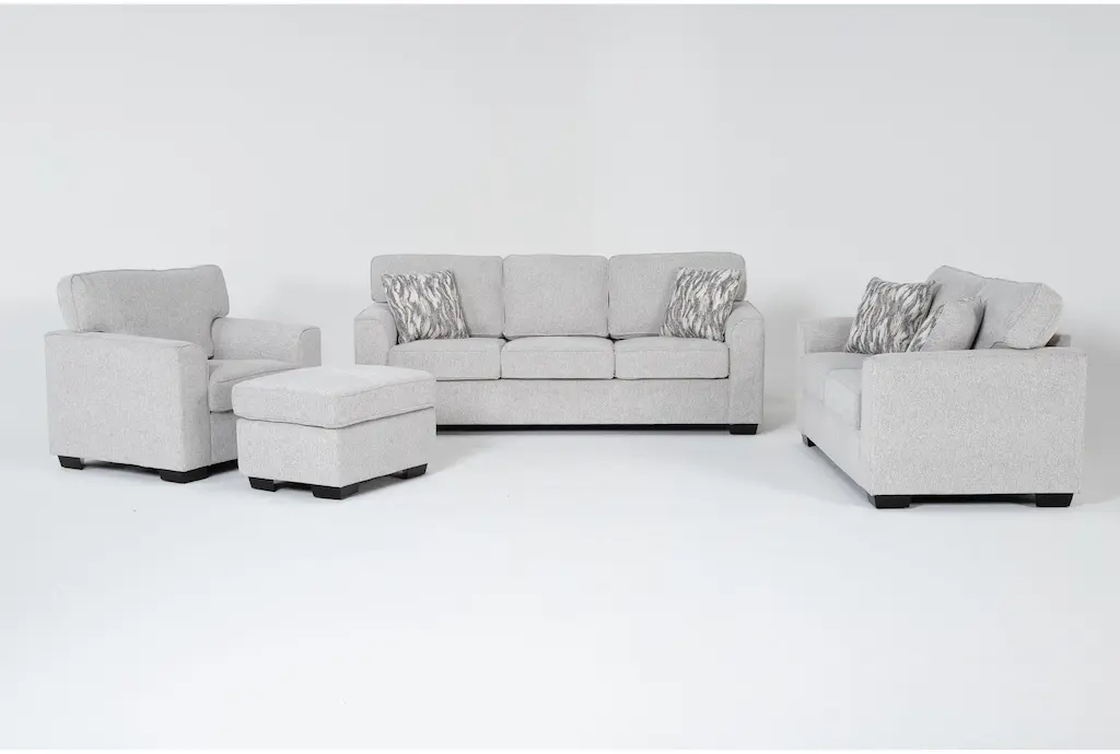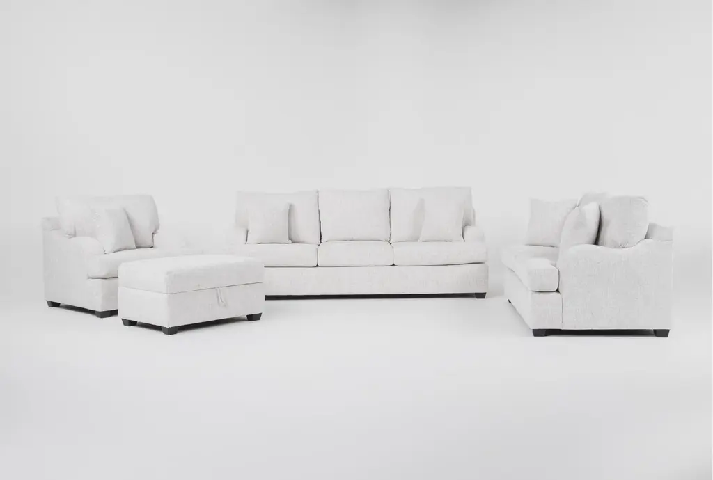 Shea White Fabric Pepper Sofa, Loveseat, Arm Chair & Ottoman Set