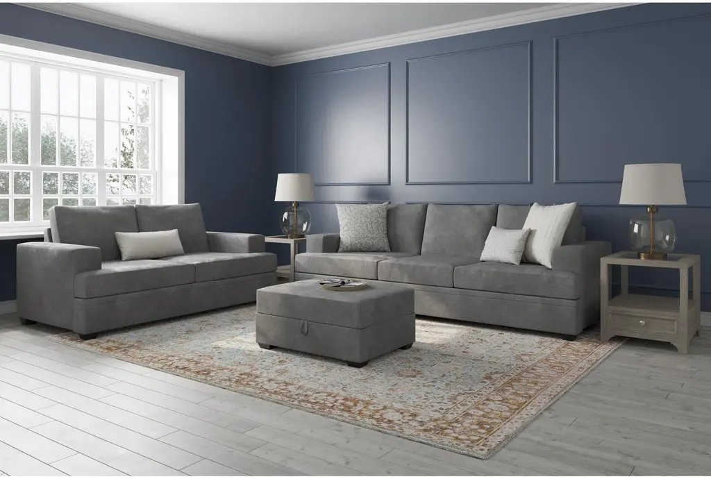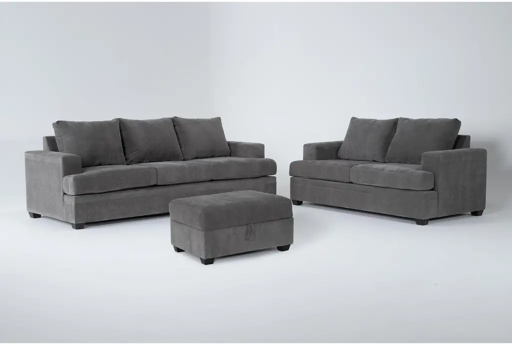 Bonaterra Charcoal Grey Fabric 3 Piece Sofa Loveseat & Storage Ottoman Set | Loose Reversible Back