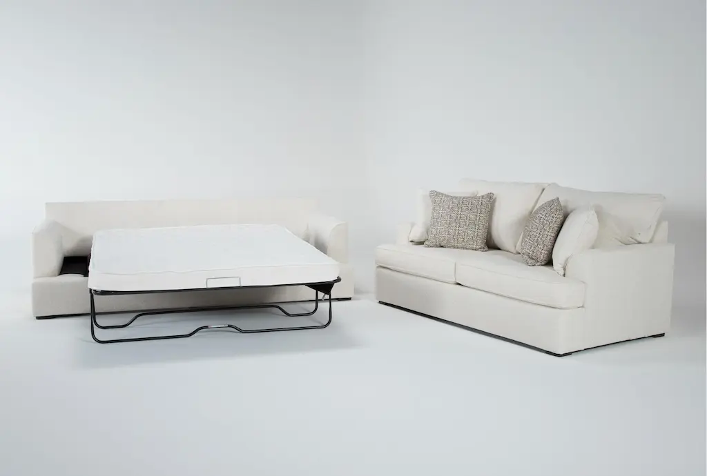 Belinha Ii Opal White Fabric 2 Piece Queen Memory Foam Sleeper Sofa Bed & Condo Sofa Set | Loose Reversible Back