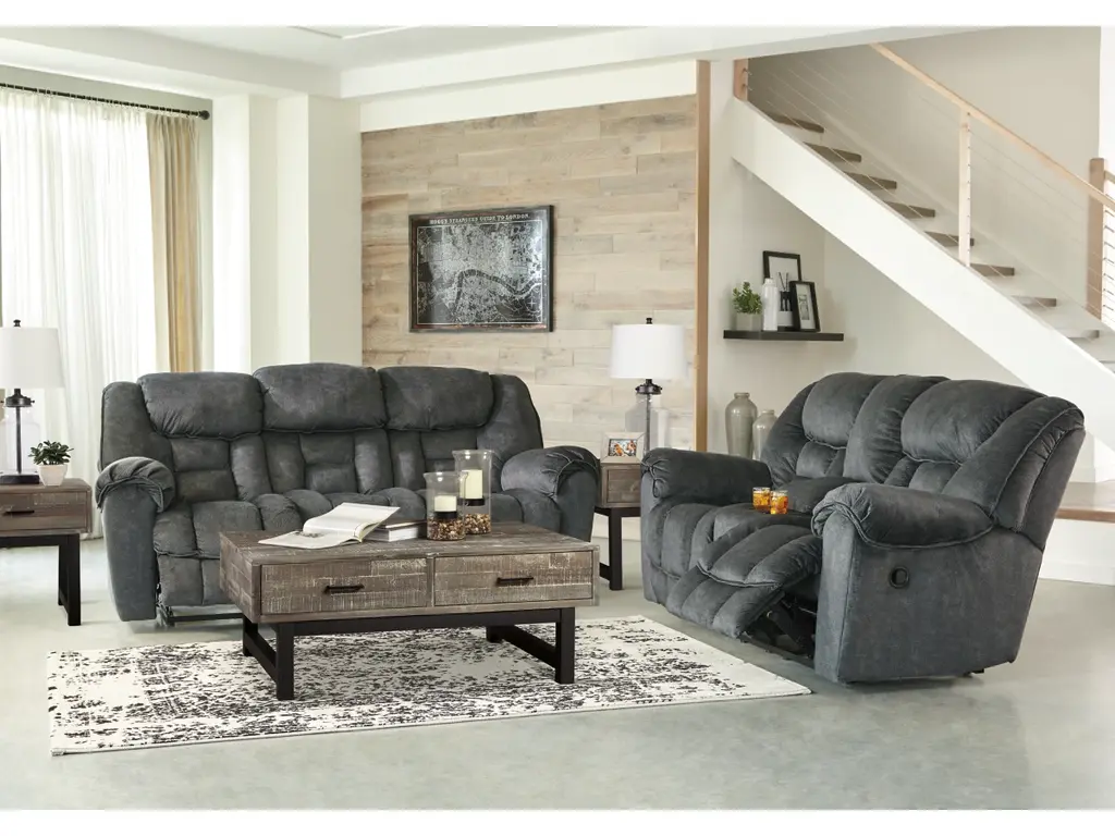 Sometimes seeing is believing. Rest assured the Capehorn reclining sofa and loveseat set is every bit as indulgent as it looks. Designed to put you in the lap of luxury, this generously scaled reclining sofa and loveseat—wrapped in a wonderfully plush and practical granite gray upholstery—sport scooped pillow wrapped armrests and curvaceously cushioned head-neck support for feel-good flair.