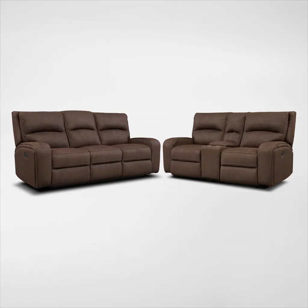 Rustic character comes forth in the Jesolo reclining sofa and loveseat set. Designer stitching adds a fashion-forward touch to its soft cushions. Faux suede fabric speaks to your knack for superior-quality materials. The high backs provide ample support as you get off your feet for a bit. And with a simple pull of the tab, you’ll be easing back into relaxation. Infinite levels of comfort await.