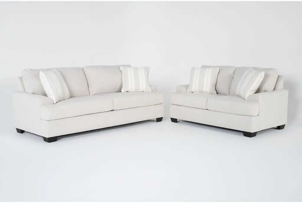 Reid Buff Beige Fabric 2 Piece Sofa And Lovseat Set