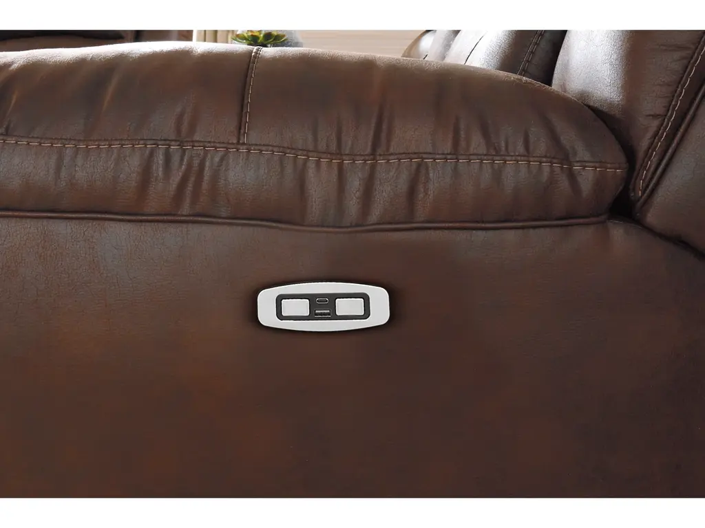 For those that love the cool look of leather but long for the warm feel of fabric, the Stoneland power reclining sofa and power reclining loveseat deliver both with ease. When it’s time to relax, the one-touch power control puts the perfect position at your fingertips. Channel-stitched back cushions provide indulgent lumbar support for maximum comfort—not to mention fashion-forward flair.