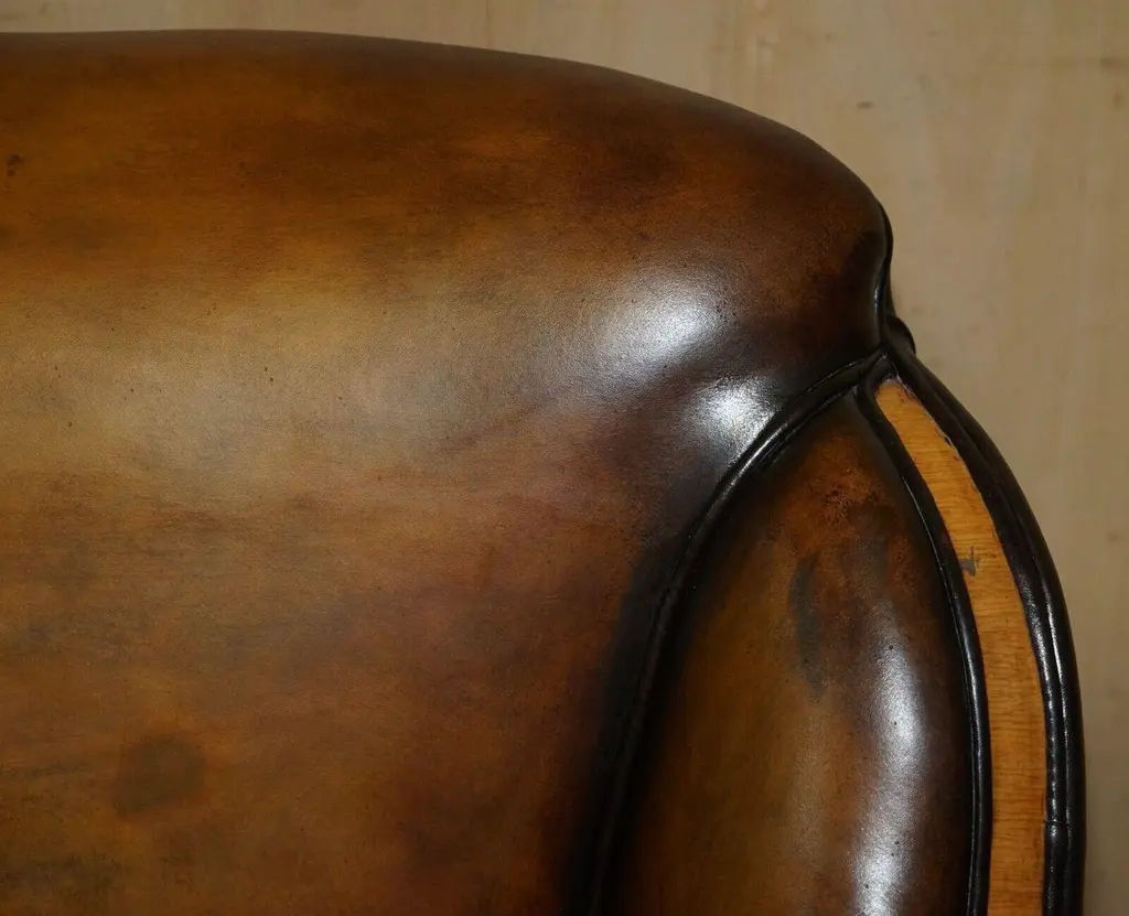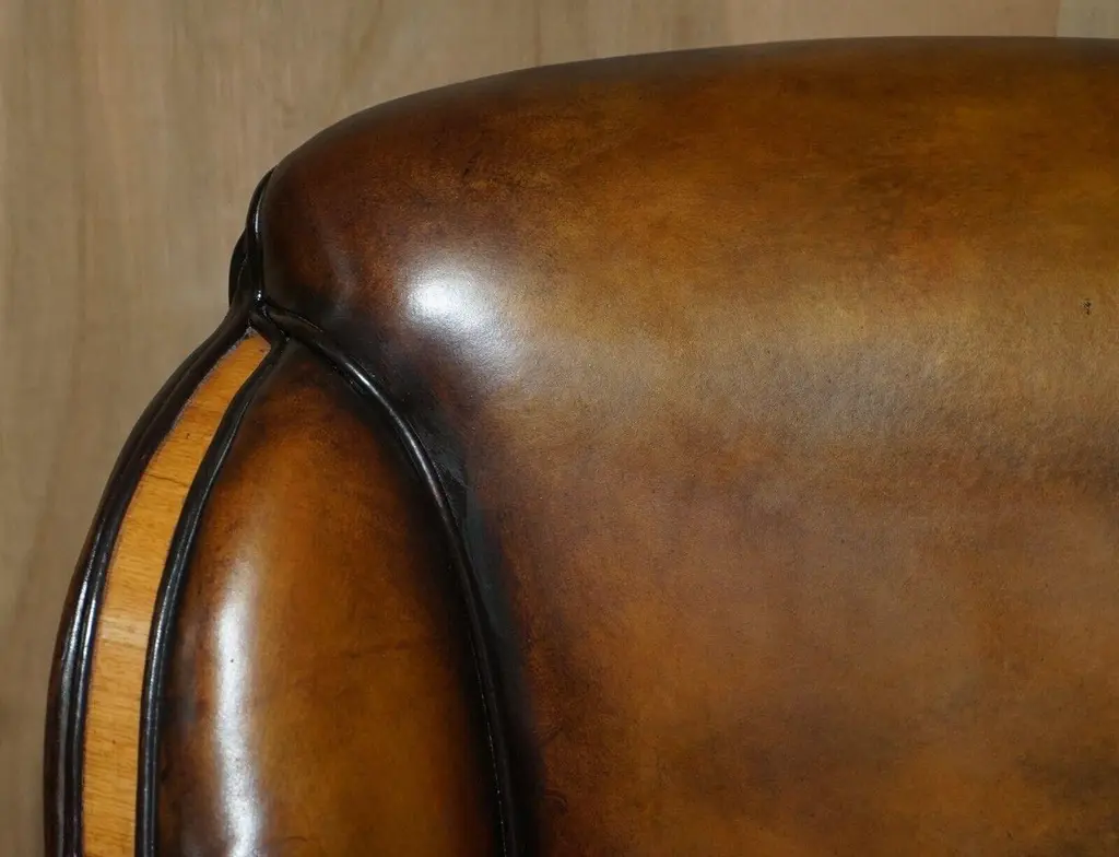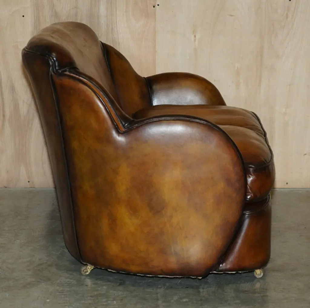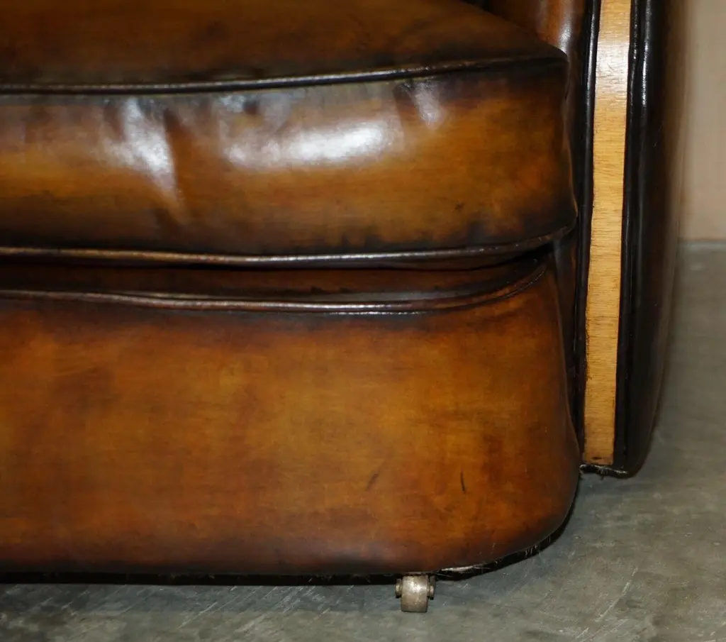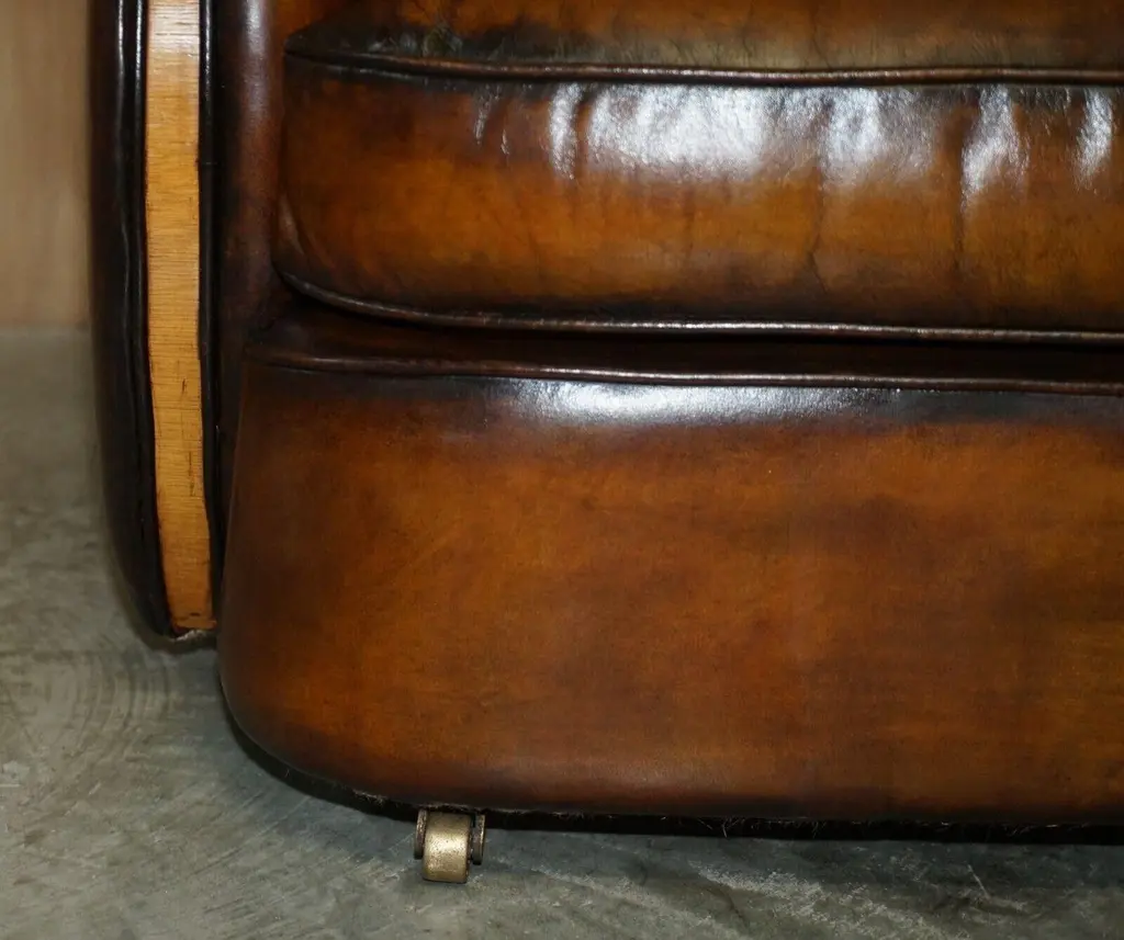 1 Of 2 Of Restored Art Deco Harry & Lou Epstein Hand Dyed Brown Leather Sofas