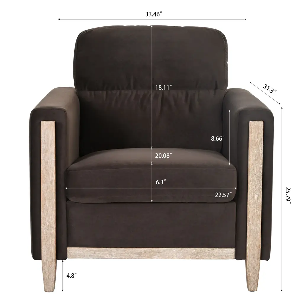 Easy to assemble (can be assembled within 20 minutes normally)Imported rubber wood legs, solid wood feet, strong support(each seat can bear 220 pounds), natural surface texture,fine and smooth.High resilience sponge seat cushion, comfortable sittingexperience, the combination of solid wood and modernmaterials makes the product more aesthetically pleasinSuitable for living room environmentsWeights& Dimensions&DescriptionProduct Type:SofaProduct size:33.46"W * 31.3"D * 35.43"HSeat Length:22.57"Seat Depth:20.08"Seat Hight:18.11"Cushion thickness:6.3"Leg Hight:4.8"Distance from the Bottom of the sofa to the floor:4.8"Height of Backrest:18.11"Width of Arm:5.71"Leg Material:Rubber WoodInternal Frame Material:Pine+PlywoodInternal Seat Material:Pocket Springs+FoamInternal Backrest Material:PP FoamMaximum Load Bearing:220 LBSCarton Size:29.92 "W*22.83 "D*24.41 "HN.W.:49.5LBSG.W.:56.1LBSMaterial:PU Cover+Pine+Plywood+Pocket Springs+Foam+PP Foam+Rubber Wood LegsAssembly Method:Seat/Arm/Back/Leg/Front Rail KD