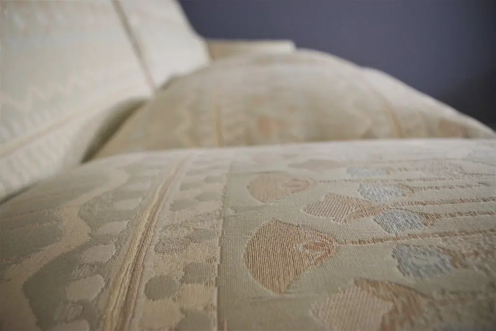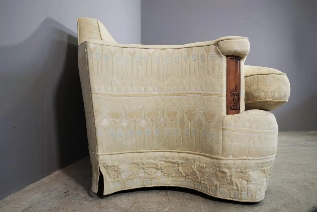 1950s Two-Piece Sofa Set - Elegant Vintage CharmThis exquisite 1950s two-piece sofa set embodies mid-century sophistication, offering a versatile and refined seating solution for any stylish interior. With its sumptuous feather-filled cushions, elegant silhouette, and intricate patterned fabric, it is a testament to classic craftsmanship.Key FeaturesMid-Century EleganceA timeless design that blends vintage aesthetics with ultimate comfort, featuring gracefully curved armrests and a plush, inviting seat.Luxurious UpholsteryWrapped in an elegant beige and golden-yellow fabric, adorned with a delicate geometric floral pattern that enhances its vintage appeal.Premium ComfortThe seat cushions are generously filled with goose feathers, ensuring a soft and supportive seating experience.Solid CraftsmanshipThe sturdy wooden frame guarantees durability, making this sofa set an investment in both style and quality.Versatile Two-Piece ConfigurationThe sofa can be arranged as a single expansive seating area or two individual lounge pieces, adapting effortlessly to different room layouts.Dimensions (Each Piece)Width: 133 cmDepth: 90 cmHeight: 75 cmSeat Height: 48 cmWeight Range: Standard (40-80 kg)Why Choose This Sofa Set?✔ Authentic 1950s Vintage - A rare and stunning piece of furniture history.✔ Exceptional Comfort - Goose feather filling provides a luxurious seating experience.✔ Elegant & Timeless - A statement piece perfect for mid-century, eclectic, or classic interiors.✔ Versatile Layout - Use as a single sofa or two separate lounge pieces to fit your space.Add a touch of mid-century luxury to your home with this stunning 1950s sofa set!